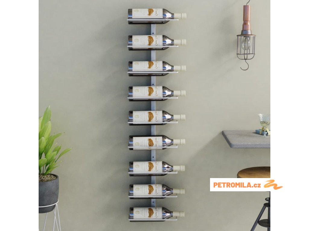 Nástěnný stojan na víno na 9 lahví bílý železo