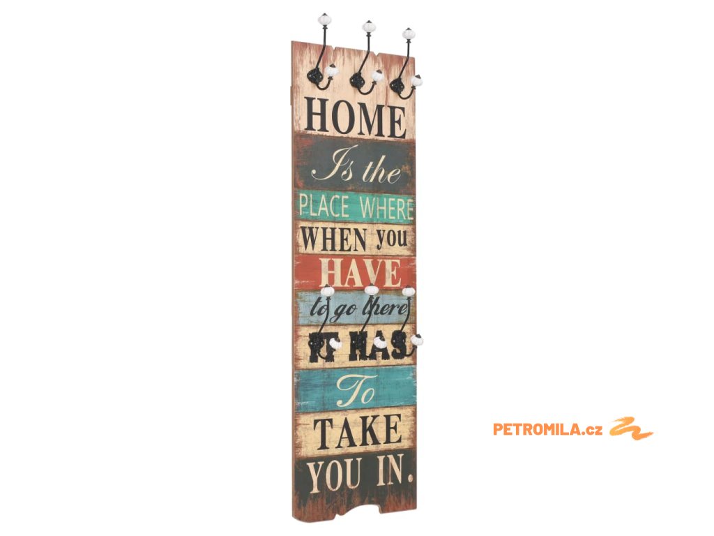 Tento nástěnný věšák s 6 háčky vaše hosty okamžitě na první pohled zaujme svým nápisem ve vintage stylu, jenž říká „Home is the place where when you have to go there, it has to take you in." (Domov je místo, které, musíte-li tam jít, vás musí přijmout.)