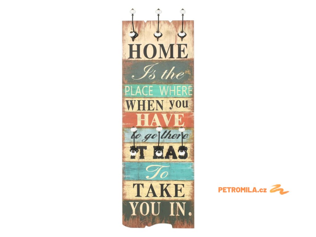 Tento nástěnný věšák s 6 háčky vaše hosty okamžitě na první pohled zaujme svým nápisem ve vintage stylu, jenž říká „Home is the place where when you have to go there, it has to take you in." (Domov je místo, které, musíte-li tam jít, vás musí přijmout.)