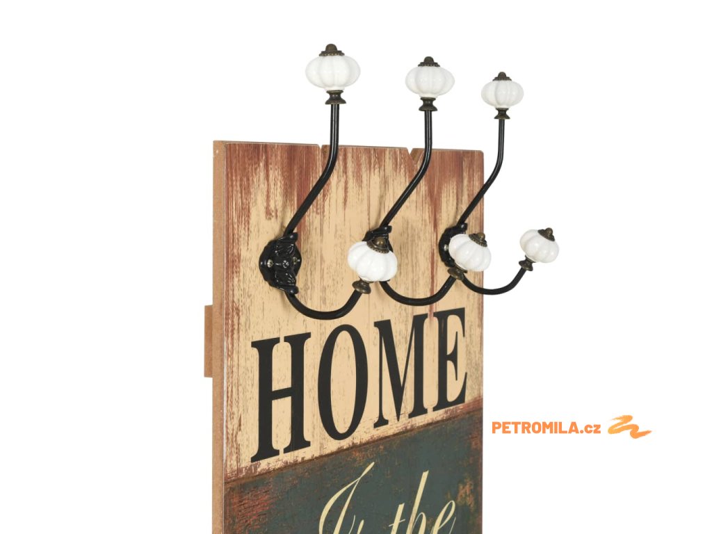 Tento nástěnný věšák s 6 háčky vaše hosty okamžitě na první pohled zaujme svým nápisem ve vintage stylu, jenž říká „Home is the place where when you have to go there, it has to take you in." (Domov je místo, které, musíte-li tam jít, vás musí přijmout.)