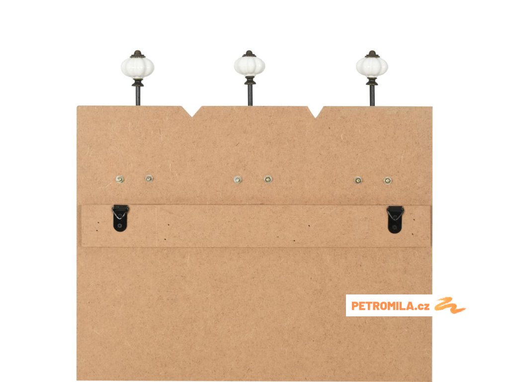 Deska věšáku je vyrobena z MDF, je tedy velmi pevná. Věšák disponuje dvěma řadami tří nádherných kovových háčků a poskytne vám spoustu prostoru pro vaše kabáty, tašky, šály, čepice a další maličkosti. Na zadní straně věšáku najdete dva upevňovací body, které vám umožní věšák snadno připevnit na zeď. Montáž je jednoduchá.
