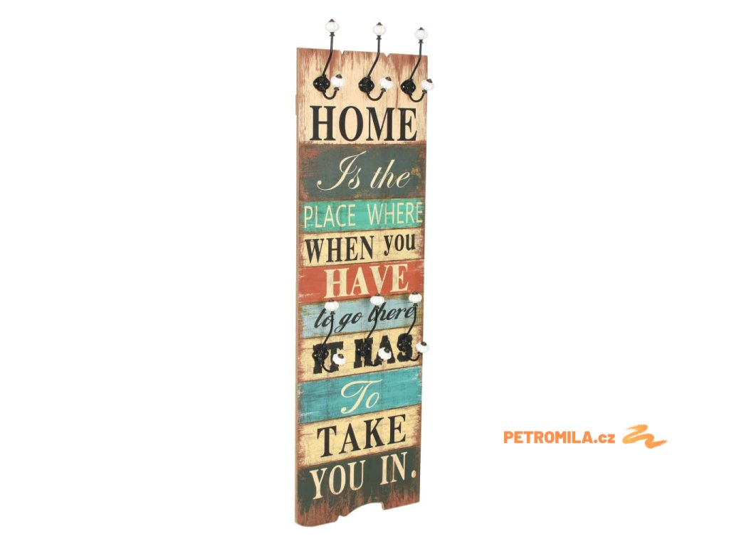 Tento nástěnný věšák s 6 háčky vaše hosty okamžitě na první pohled zaujme svým nápisem ve vintage stylu, jenž říká „Home is the place where when you have to go there, it has to take you in." (Domov je místo, které, musíte-li tam jít, vás musí přijmout.)