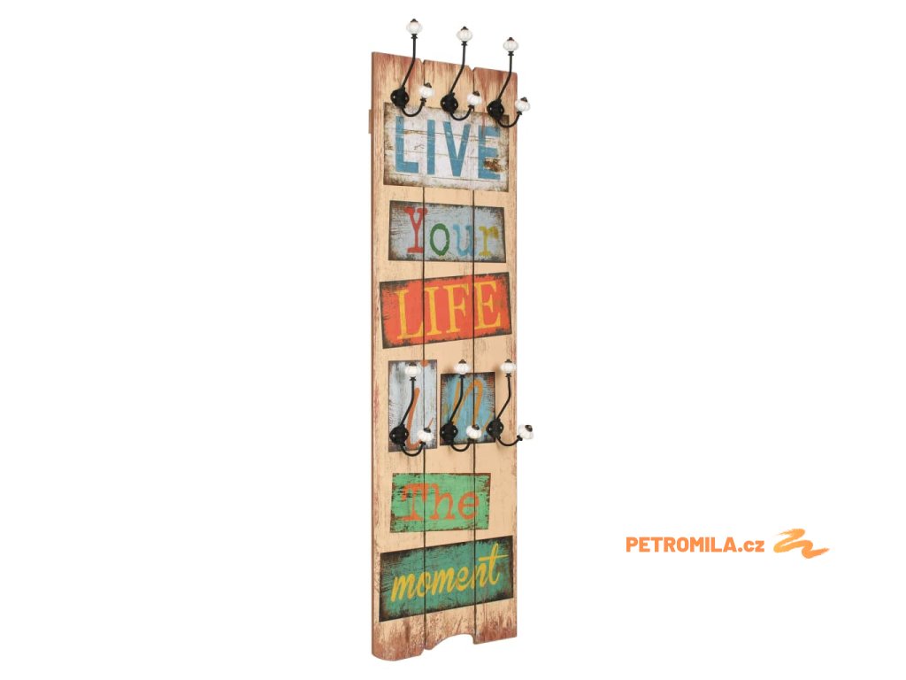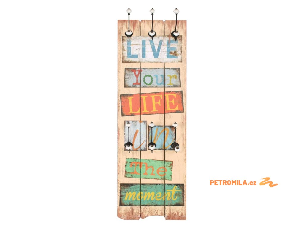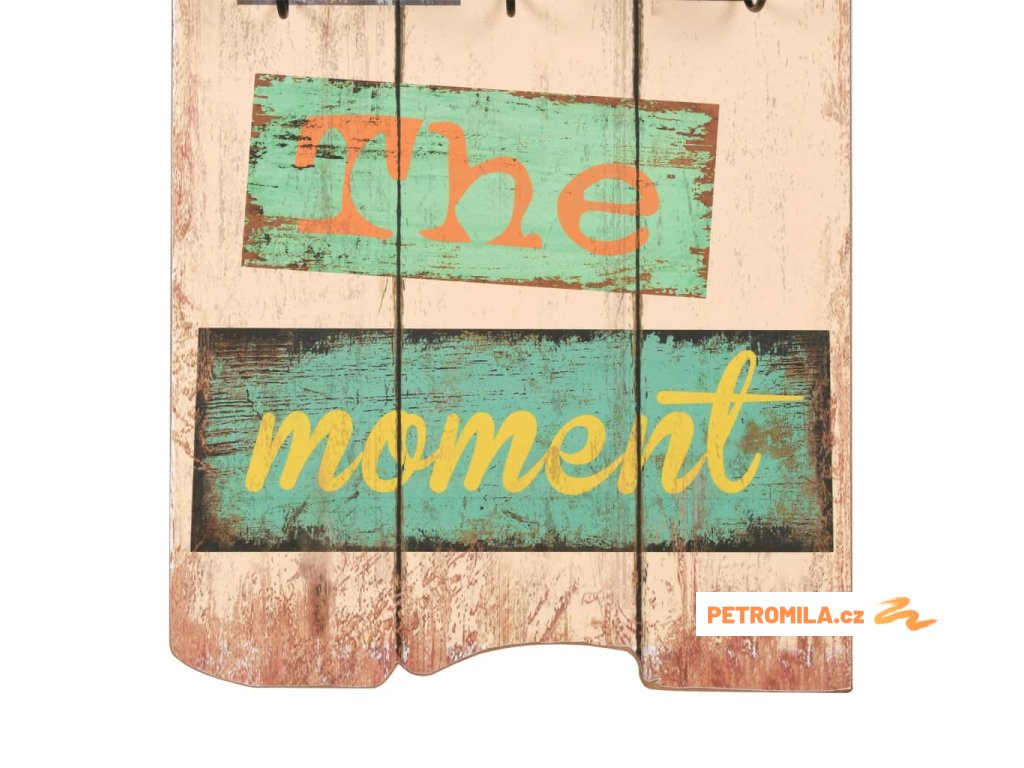 Tento nástěnný věšák s 6 háčky vaše hosty okamžitě na první pohled zaujme svým nápisem ve vintage stylu, jenž říká „Live your life in the moment." (Žij svůj život v každém okamžiku.)