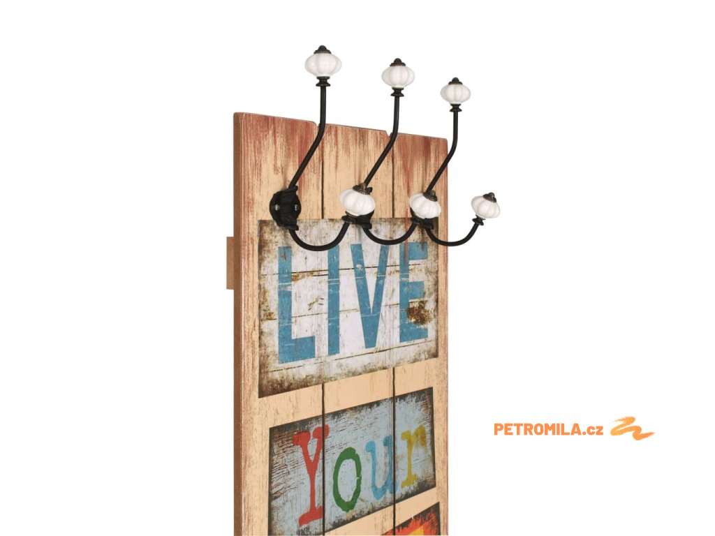 Nástěnný věšák na kabáty LIVE LIFE s 6 háčky 120 x 40 cm