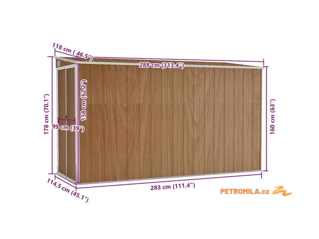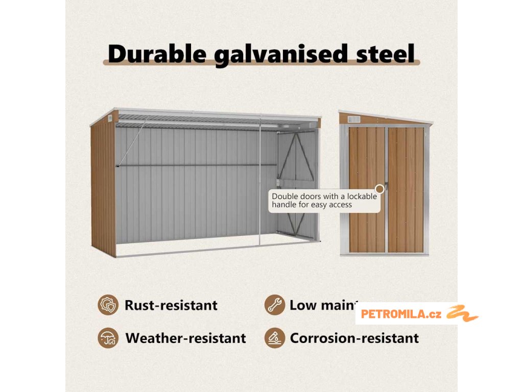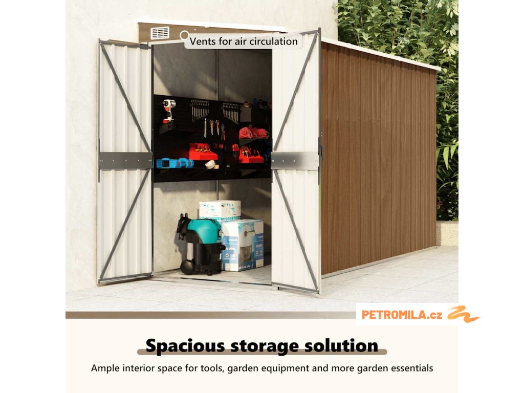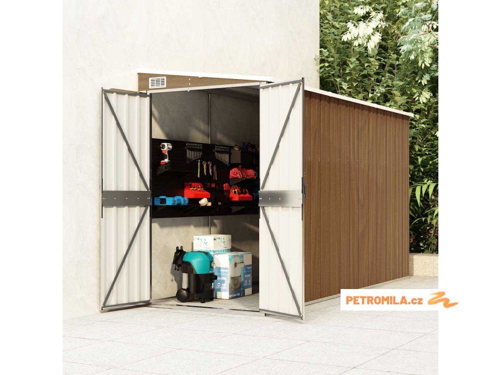 Nástěnný zahradní domek hnědý 118 x 288 x 178 cm pozinkovaná ocel