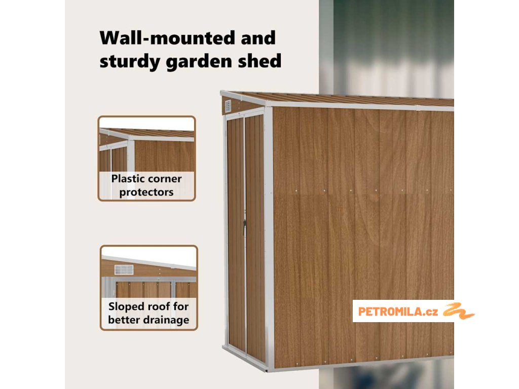 Tento nástěnný zahradní domek je ideální pro uložení různých předmětů, jako je nářadí, zahradní nábytek, zahradní vybavení atd. Domek nabízí ochranu před nečistotami, prachem a také před silným větrem a povětrnostními vlivy.