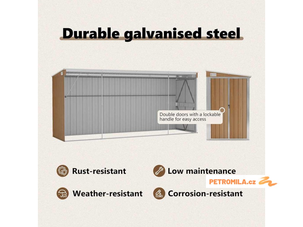 Zahradní kůlna tmavě hnědá 192 x 440 x 223 cm pozinkovaná ocel