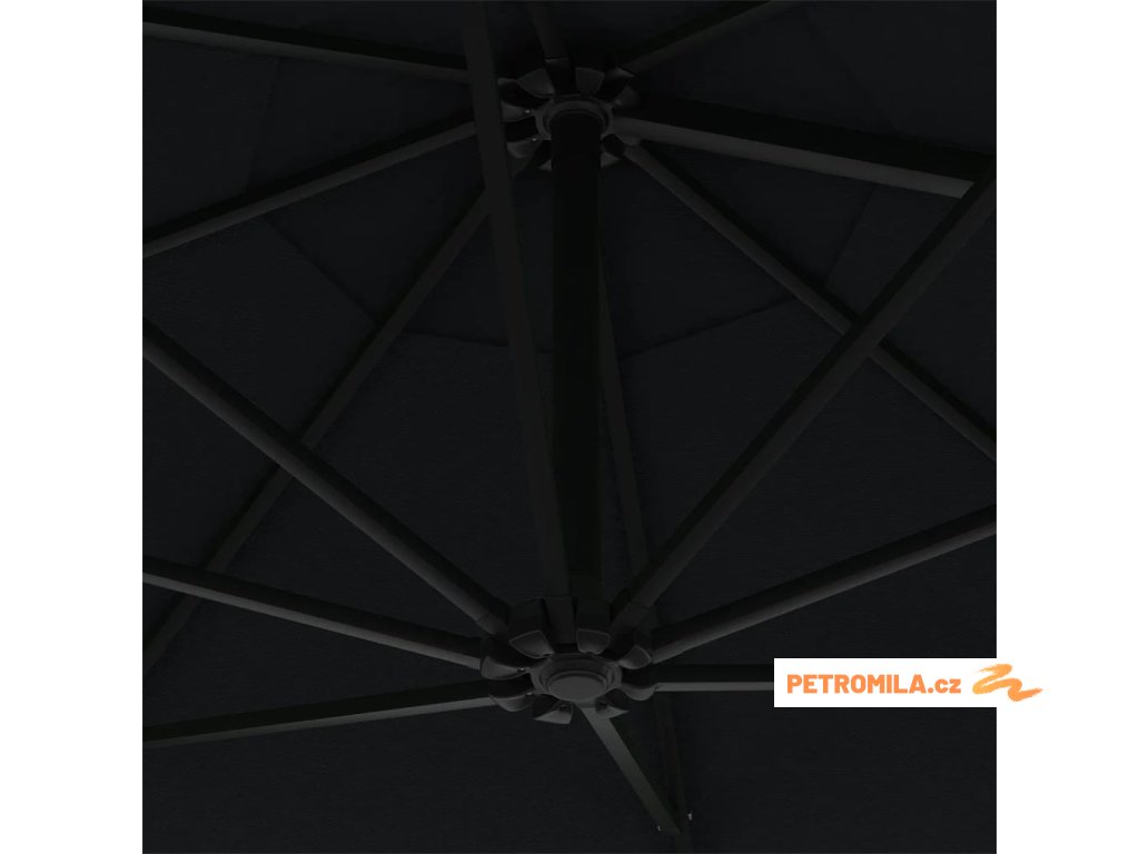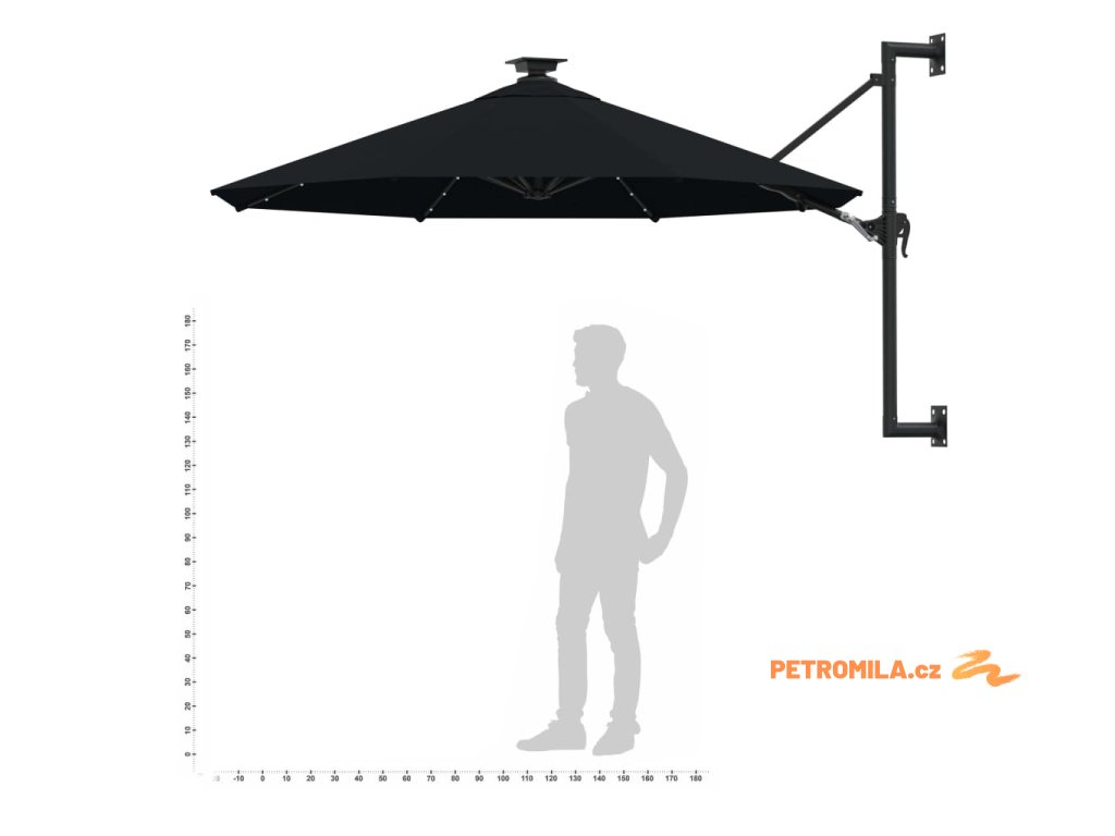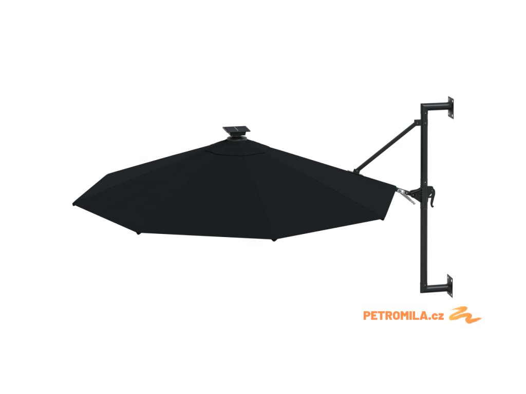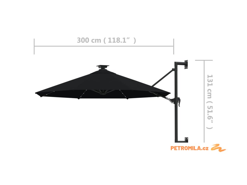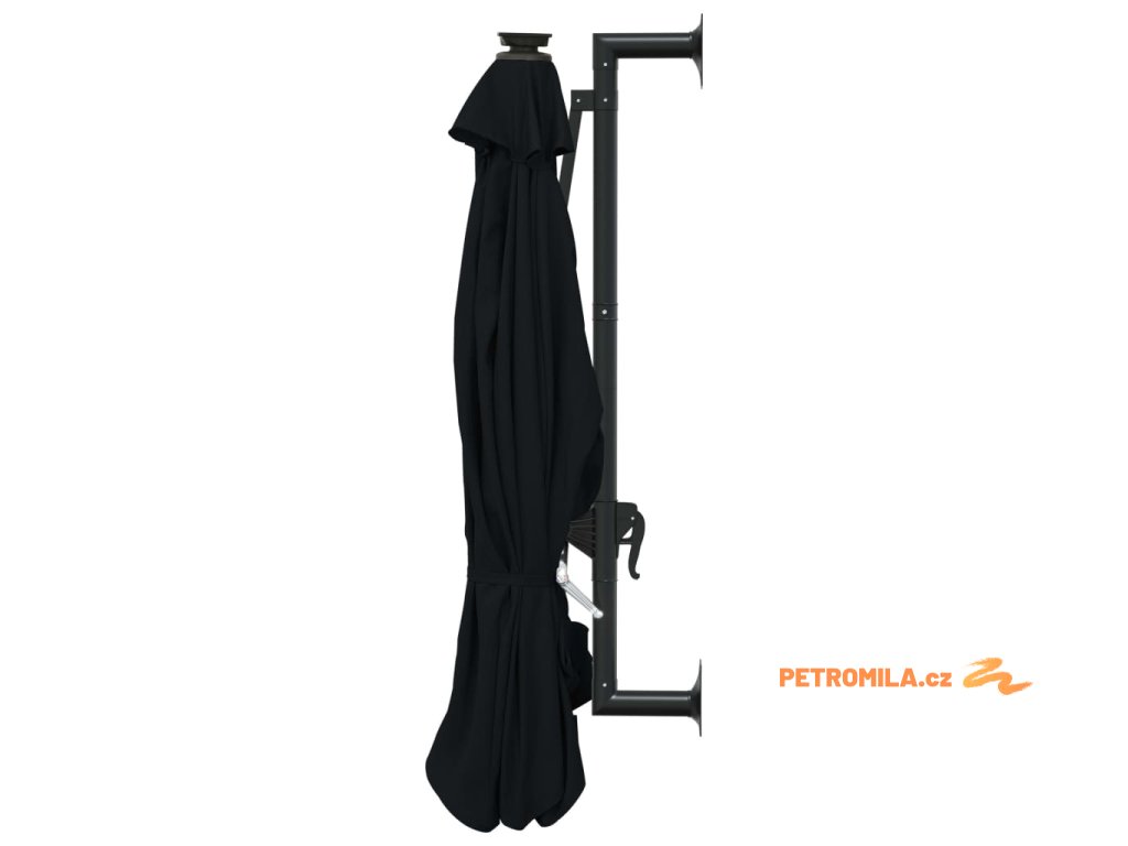 Nástěnný zahradní slunečník s LED 300 cm černý