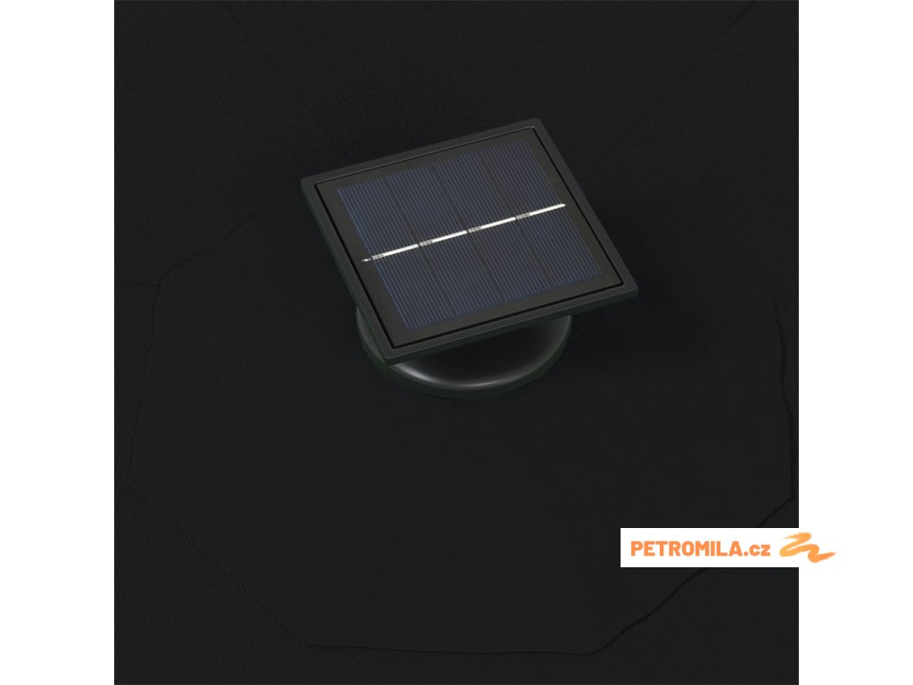 Slunečník je vyrobený z polyesteru, který je odolný vůči UV paprskům a blednutí barev. Poskytne vám tudíž optimální ochranu před sluncem a snadno se čistí. Slunečník má také exkluzivní sklopný design, takže když začne slunce odpoledne klesat k obzoru, můžete ho sklopit a zůstat v příjemném stínu. Stabilitu a odolnost slunečníku zajišťuje silná kovová tyč spolu s 8 odolnými žebry. Zahradní slunečník jednoduše otevřete a zavřete klikovým mechanismem. A chcete-li si večer vytvořit útulné a romantické prostředí, stačí rozsvítit 28 integrovaných LED světel.