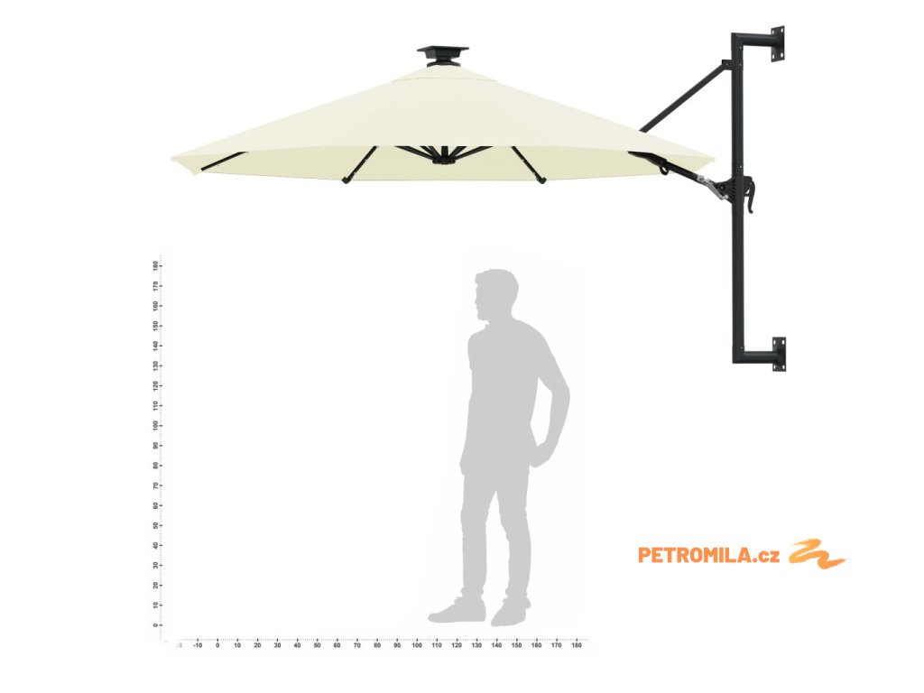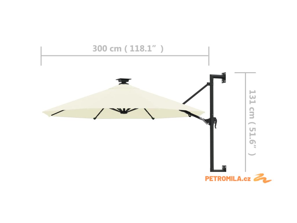 Nástěnný zahradní slunečník s LED 300 cm pískový