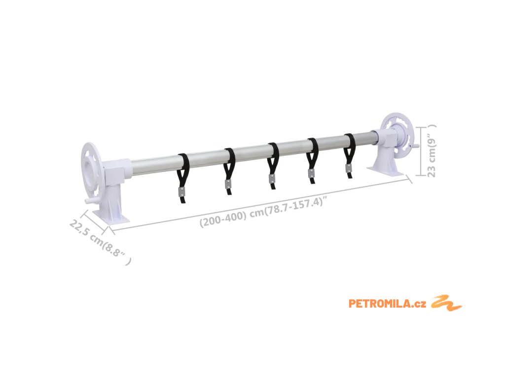 Naviják je vybavený posuvným mechanismem, takže si jeho šířku můžete snadno nastavit tak, aby vyhovovala šířce plachty (hodí se pro plachty s minimální šířkou 2 m a maximální šířkou 5 m). Je vybavený 2 kolečky s válcovým úchytem pro snadné ovládání. Stačí otočit klikou a plachta se pomocí dodaných popruhů bez námahy navine na válec. Ten je vyrobený z hliníku, který je odolný vůči korozi a povětrnostním vlivům, takže je pevný a má velmi dlouhou provozní životnost.