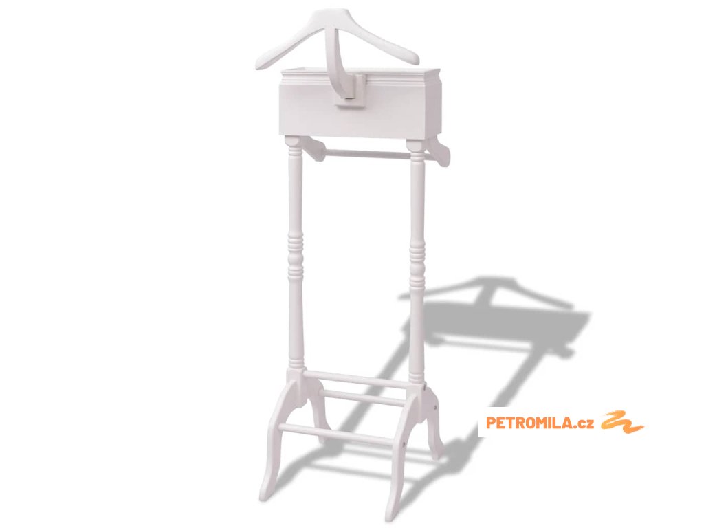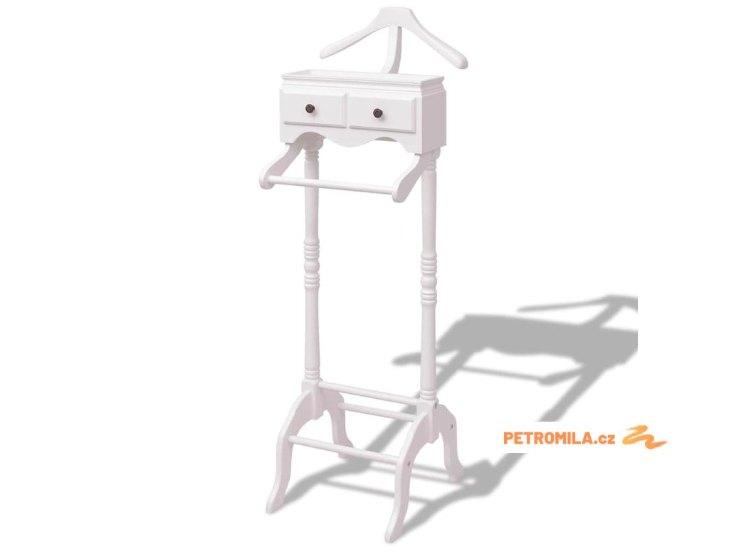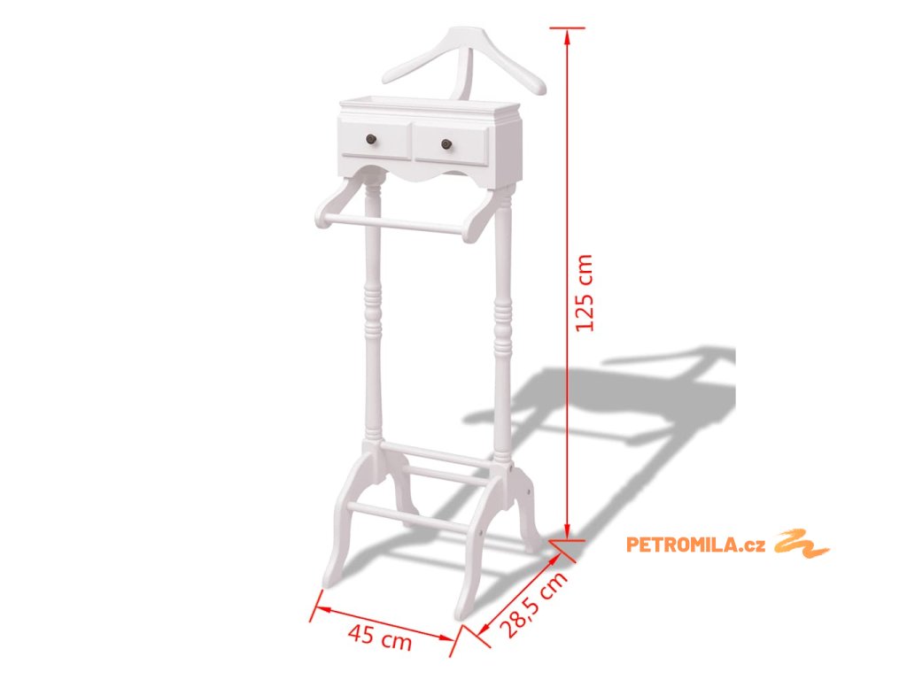 Tento věšák je vyrobený z vysoce kvalitních materiálů s pevnou konstrukcí, je odolný a snadno se čistí. Němý sluha s horní závěsnou lištou a ramínkem na oděvy poskytuje dostatek prostoru pro vaše obleky, šaty, kalhoty a další. Skříňka má dvě zásuvky, které byly navrženy pro uložení kravat, ponožek nebo šperků.