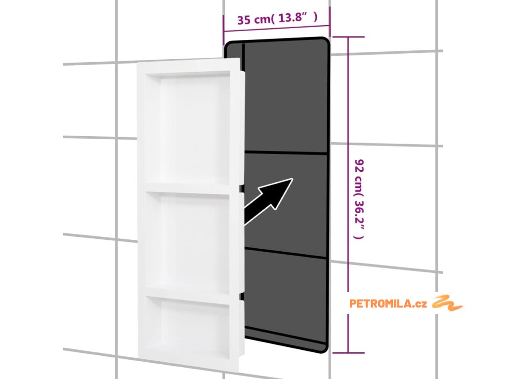 Tento výklenek nabízí praktické řešení pro váš sprchový kout nebo jiné místo v koupelně.
