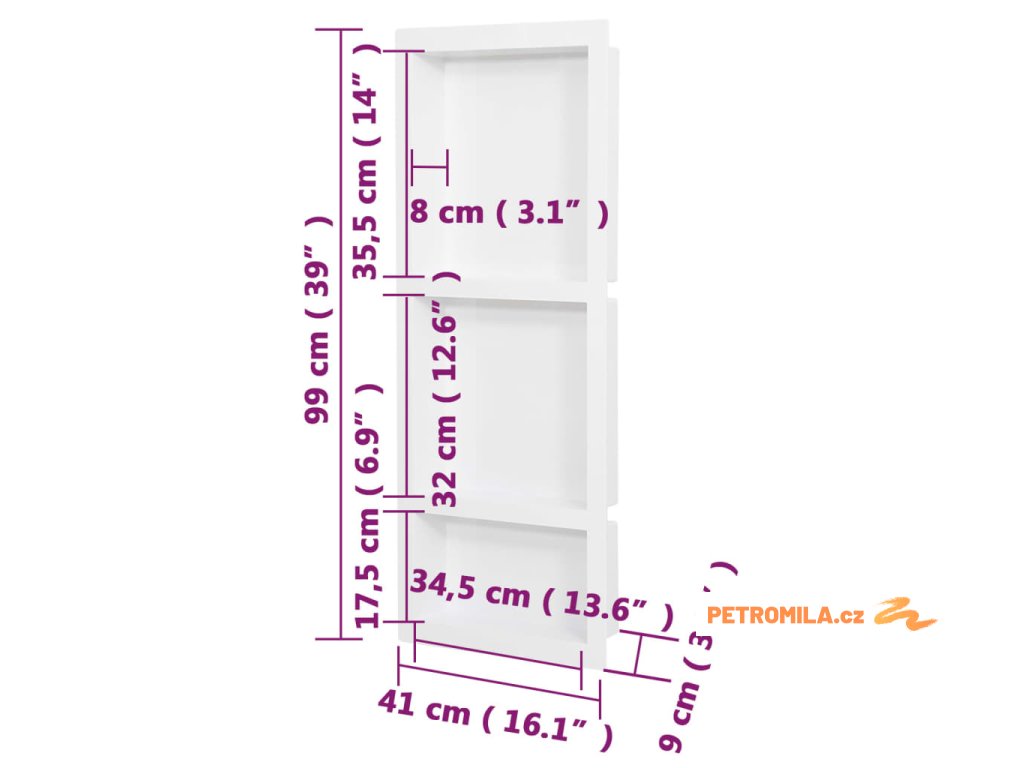 Nika do sprchového koutu 3 přihrádky lesklá bílá 41 x 99 x 9 cm