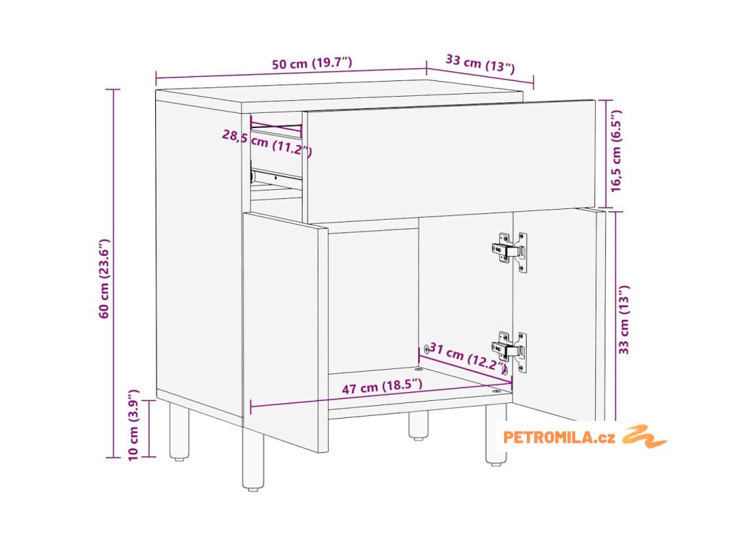 - Celkové rozměry: 50 x 33 x 60 cm (Š x H x V)