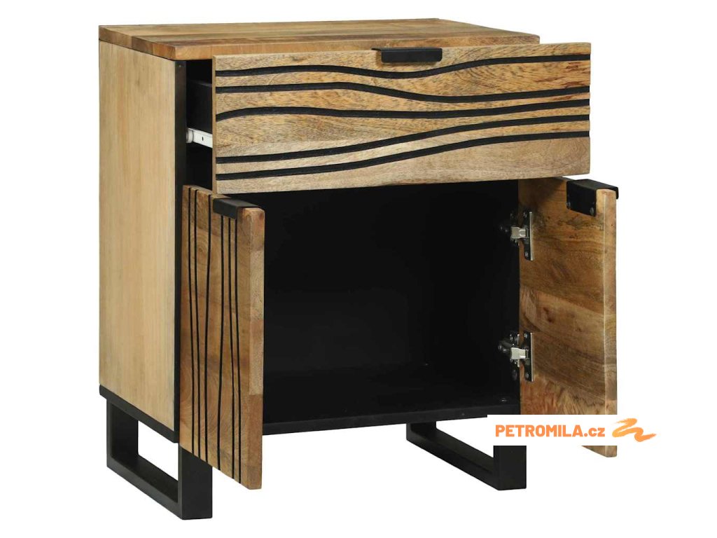 Tento krásný noční stolek spojuje funkci a styl. Má masivní mangovníkové dřevo nahoře a štíhlé železné nohy, což z něj dělá perfektní kousek do každé ložnice. Kompaktní design a texturovaný povrch mu dodávají rustikální, ale moderní nádech. Ať už ho potřebujete na lampičku nebo na uložení osobních věcí, tento stolek zvládne všechno a dodá vaší místnosti kousek charakteru.