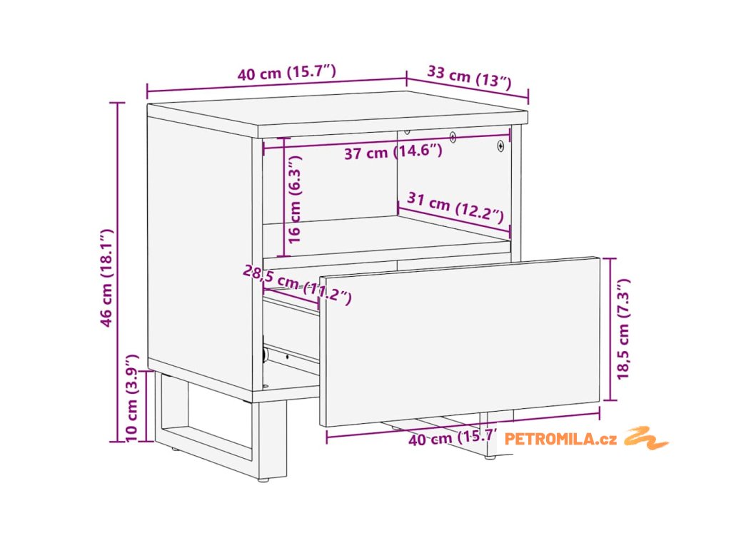 - Celkové rozměry: 40 x 33 x 46 cm (D x Š x V)