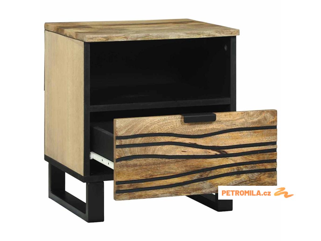 Tento noční stolek spojil styl a praktičnost, skvěle se hodí do každé ložnice. Neprůhledná textura a vlnkový vzor z něj nedělají jen další kousek nábytku, ale opravdu oživují prostor. Je skvělé na schování osobních věcí a navíc ti dá místo na lampy nebo budíky. Pevná řemeslná práce a robustní konstrukce mu dávají krásný vzhled a drží tvou ložnici útulnou a uklizenou.