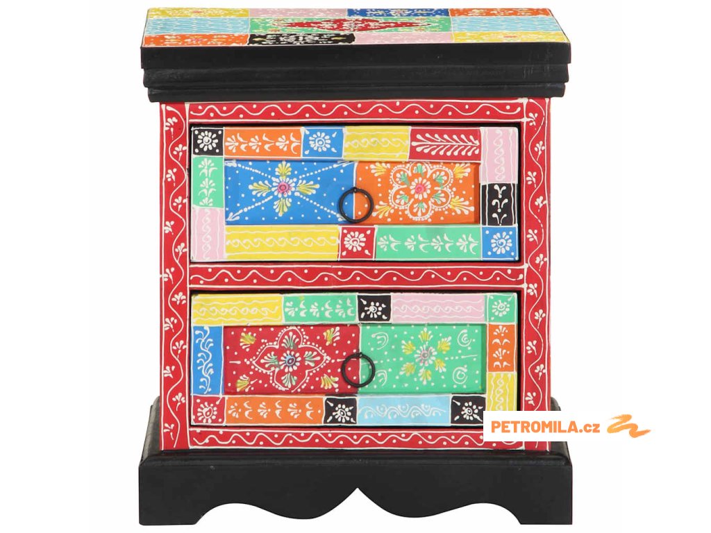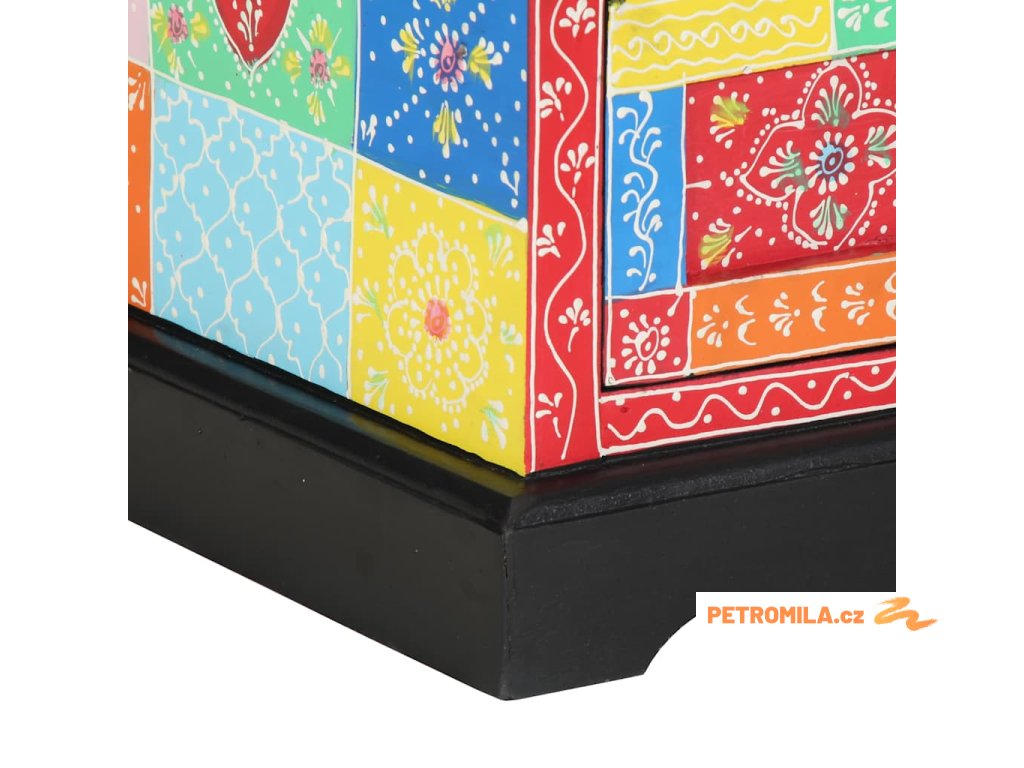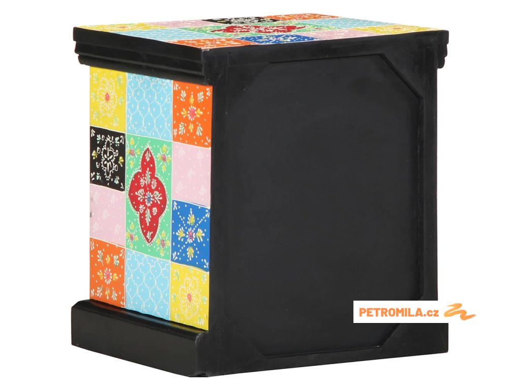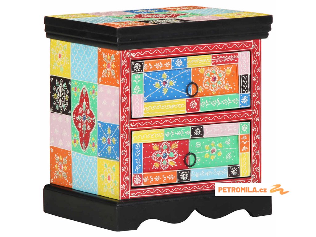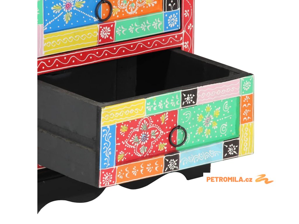 - Materiály: Pečlivě vyrobený z masivního mangového dřeva, tenhle noční stolek ukazuje přírodní textury a kvalitu. Rám z mangového dřeva je robustní, zaručuje dlouhou životnost. Ručně malované povrchy dodávají nádech elegancí, takže je to vyjímečný kousek pro tvůj interiér.