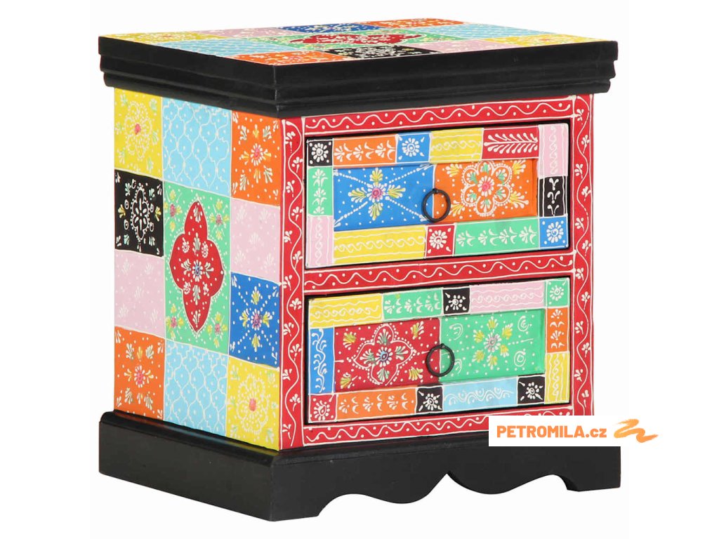 - Doporučené použití: Super pro ložnici, tenhle noční stolek slouží jako fajn místo na ukládání věcí jako jsou knihy, budíky a lampy. Jeho barevný design skvěle ladí s živými a eklektickými interiéry.