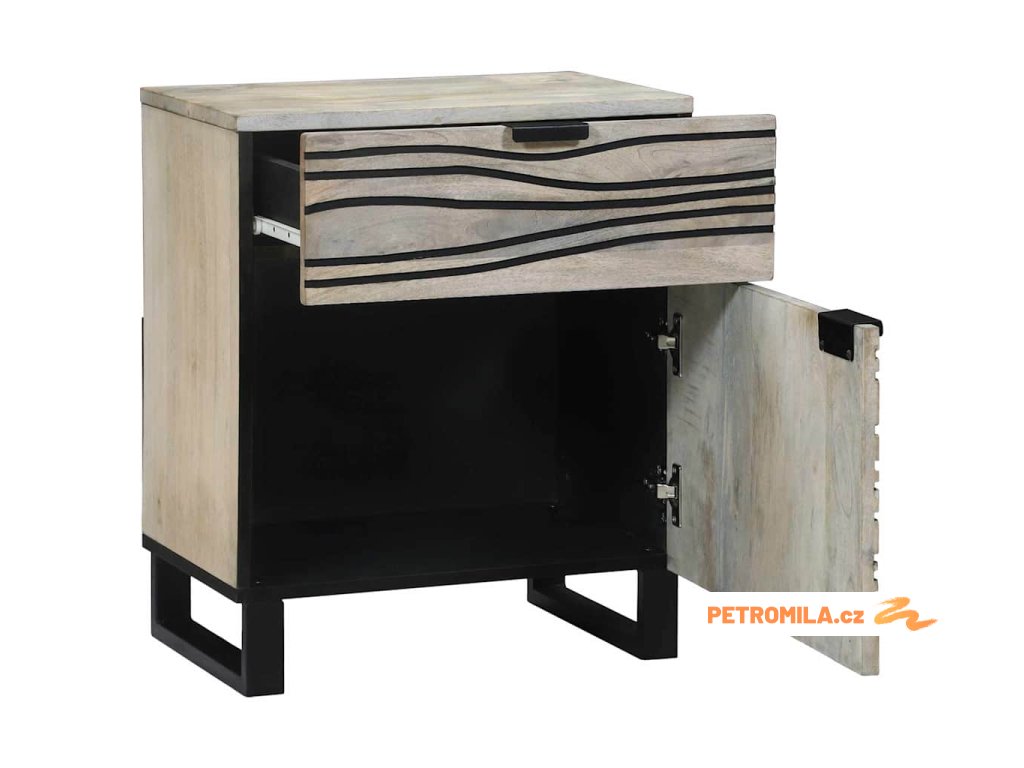 Noční stolek z mangového dřeva je změnou pro každou ložnici. Jeho štíhlý tvar a elegantní textilní textura dodávají styl. Je navržen tak, aby byl maximálně praktický, má prostor pro lampu, budík nebo knížku, což z něj dělá ideálního parťáka pro noc. S úložným prostorem a solidní konstrukcí pasuje do různých stylů ložnic a dodává špetku sophistication.