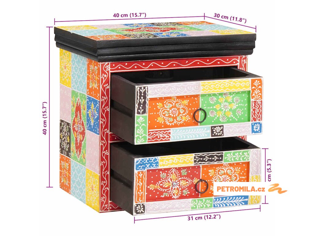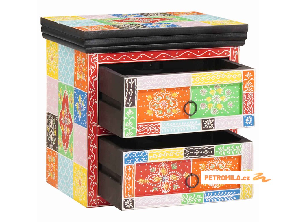 Seznam se s tímhle parádním bohémským nočním stolkem – je to perfektní mix stylu a praktičnosti. Pokud máš rád míchání textur a barev ve svém pokoji, tohle je ideální volba. Skvělý patchwork design ti padne do oka a stane se výrazným kusem v každé místnosti. Perfektně poslouží na lampy a budíky, a zároveň přidává šmrnc tvé večerní rutině.