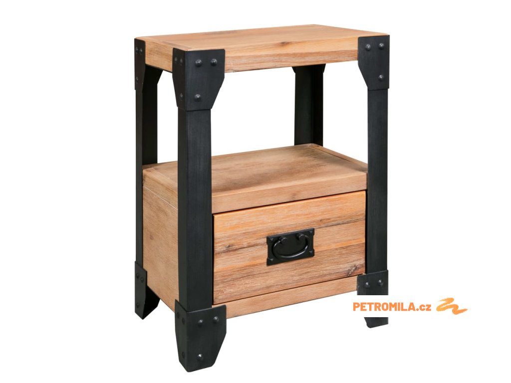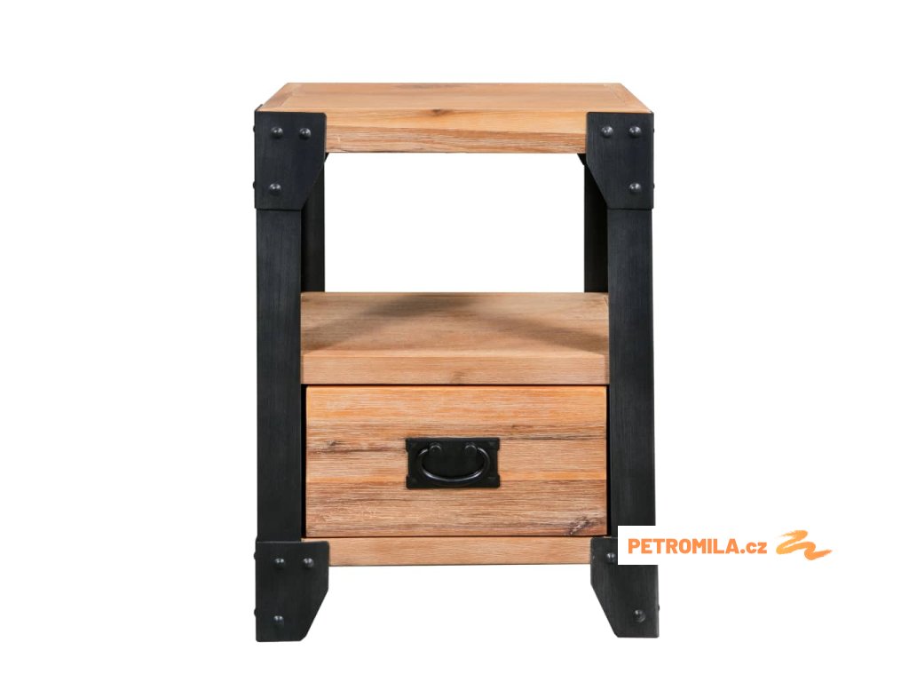 Náš noční stolek má robustní desku, ideální pro umístění budíku, lampičky na čtení, knih apod., anebo pro vystavování zarámovaných fotografií či jiných dekorativních předmětů. Zásuvka a polička vám poskytnou místo, abyste mohli mít všechny menší věci uklizené na dosah ruky. Praktické úchytky usnadňují otevírání zásuvek a přispívají k industriálnímu vzhledu nočního stolku.