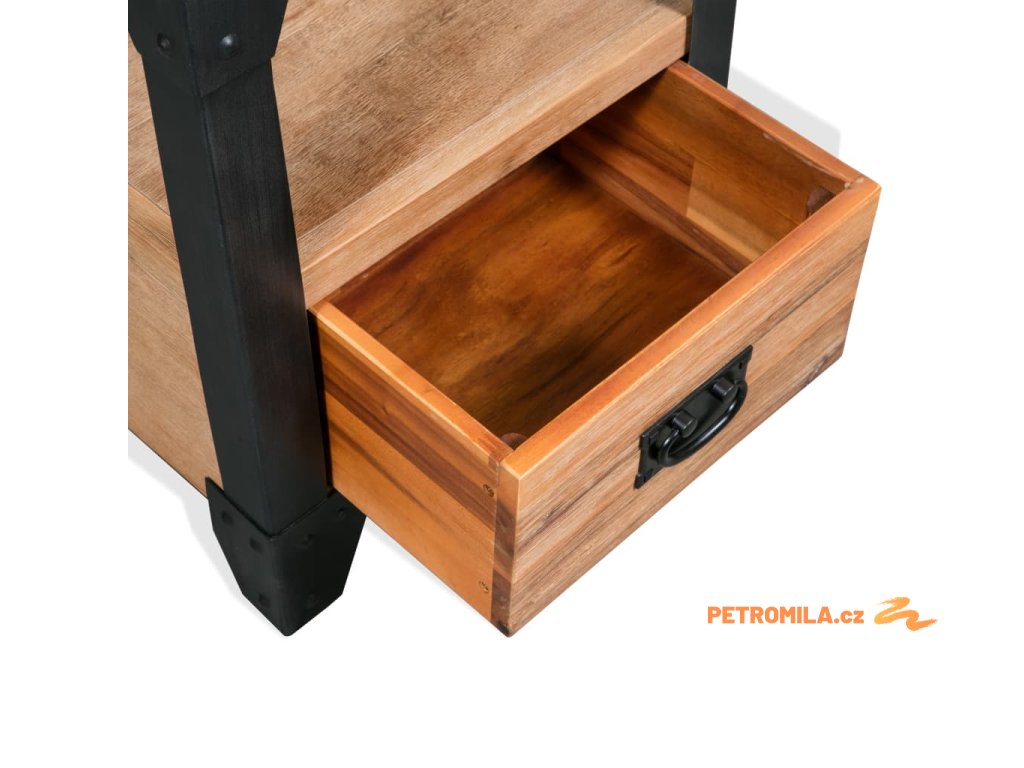 Náš noční stolek v moderním industriálním pojetí krásně ozvláštní vaši ložnici. Je vyrobený z vysoce kvalitního kartáčovaného akáciového dřeva, které doplňuje kování z černé oceli. Jde o moderní nábytek, který je ukázkou industriálního stylu, jenž je v současnosti tak populární, a který zaujme na první pohled.