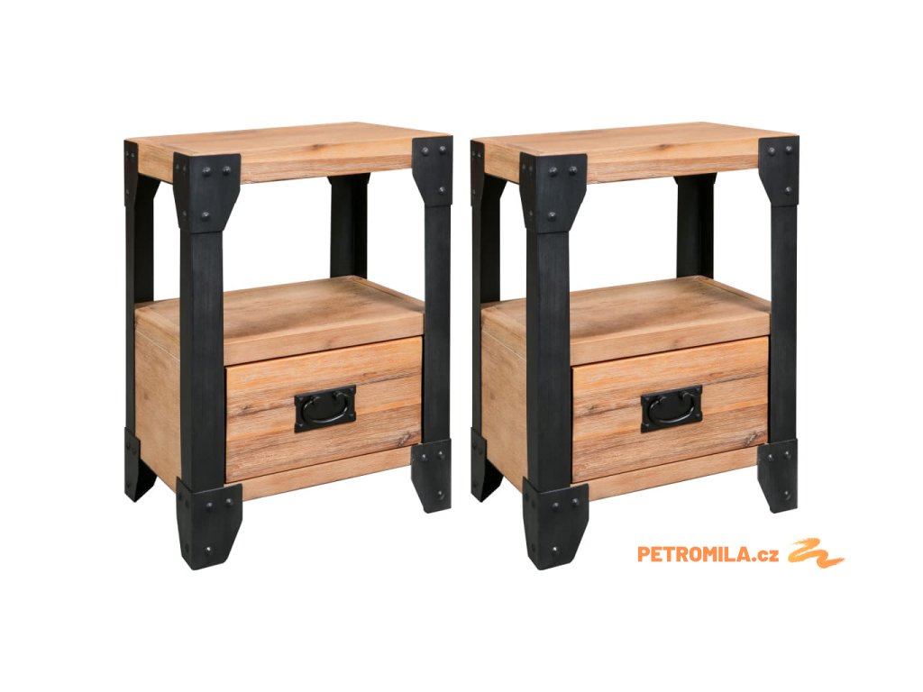 Noční stolek 2 ks masivní akáciové dřevo a ocel 40 x 30 x 54 cm