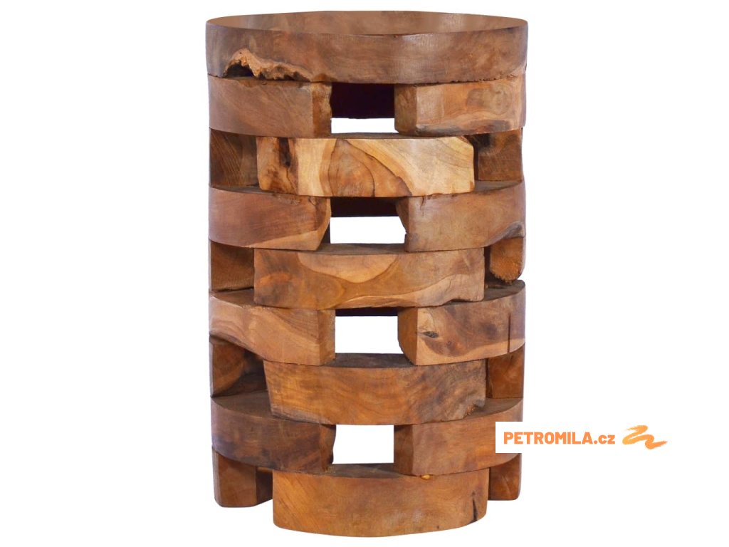 Noční stolek je pečlivě ručně vyrobený z masivního teakového dřeva, takže je odolný a solidní. Řemeslné zpracování a krásná kresba dřeva dává každému kusu nábytku jeho jedinečný a od ostatních odlišný charakter. Tento noční stolek má také odolnou horní desku, na které si můžete vystavit různé drobnosti na dosah ruky. Tento odkládací stolek slouží také jako konferenční stolek, noční stolek, stolička apod.