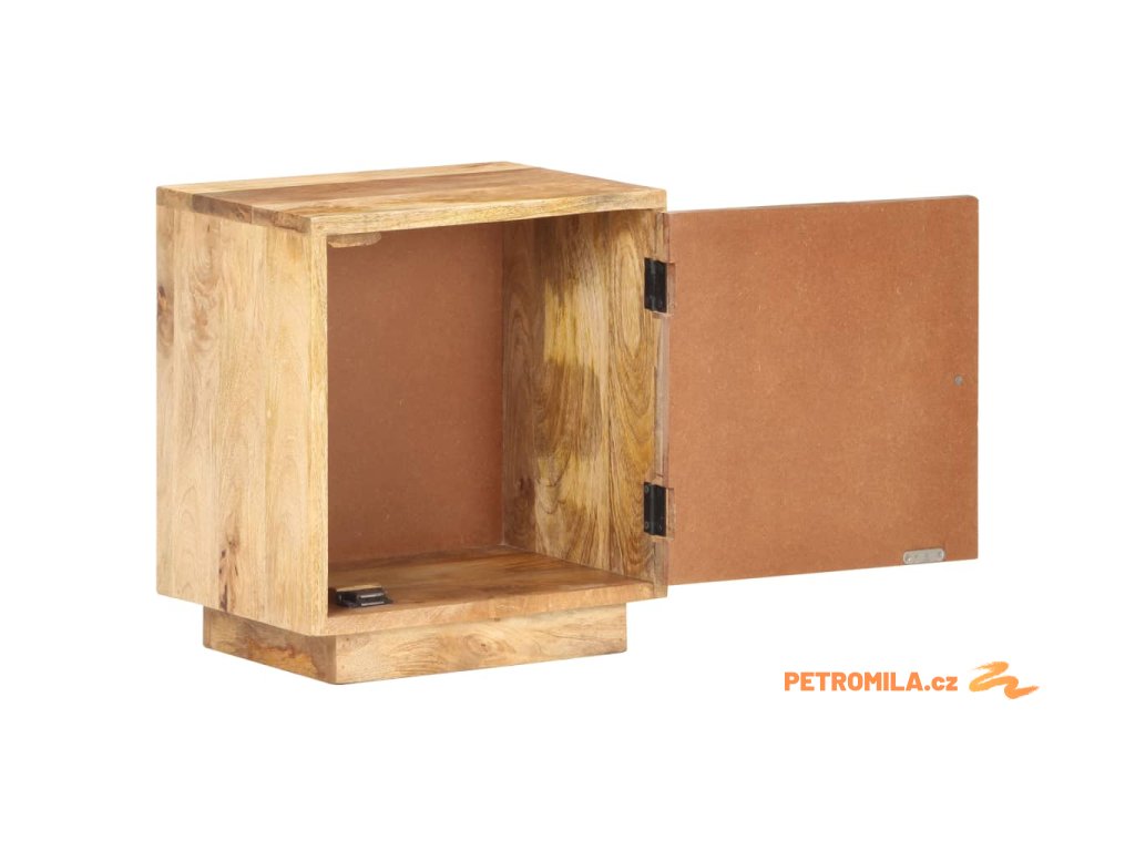 Noční stolek je zhotovený z masivního mangovníku s povrchem ve stylu přírodních fošen. Toto tropické tvrdé dřevo dokáže unést značnou váhu a skvěle odolává opotřebení i působení času. Stolek je proto velice stabilní a dlouho vám vydrží. Zručné zpracování a překrásná kresba dřeva od sebe jednotlivé kusy nábytku lehce odlišují, takže je každý z nich zcela jedinečný. Pevná horní deska je ideální k vystavení dekorací. Stolek k posteli vám poslouží i jako úložná skříňka, odkládací stolek apod.