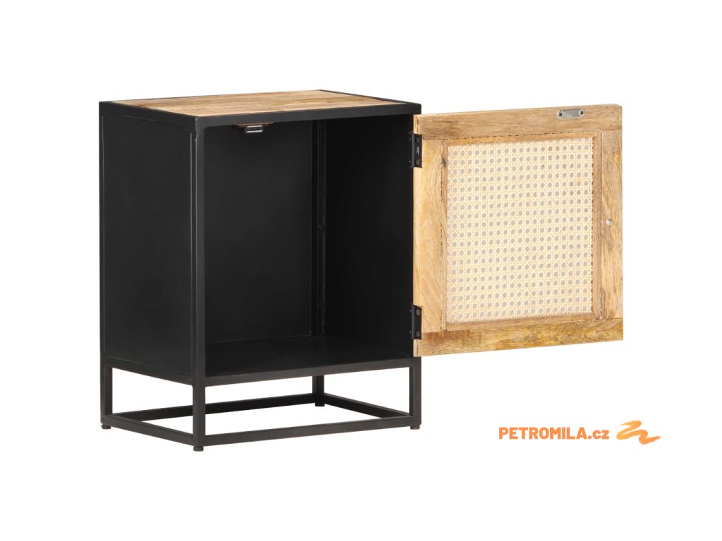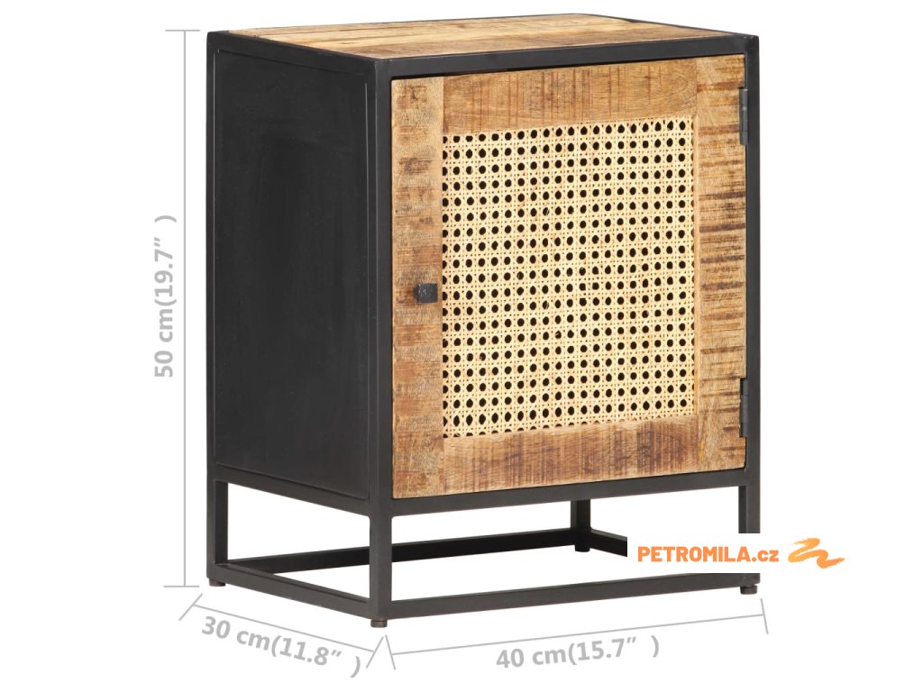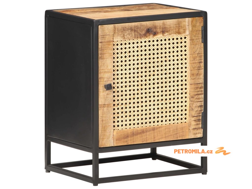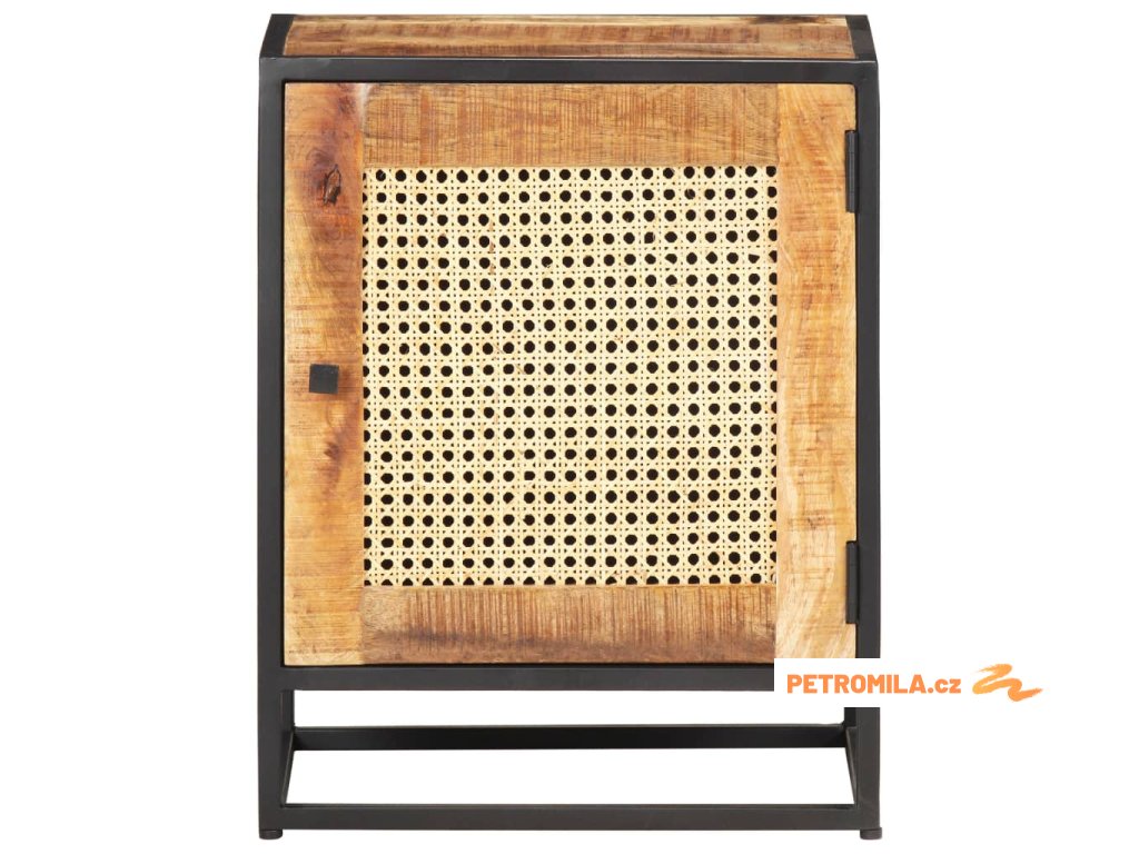 Noční stolek 40 x 30 x 50 cm masivní mangovník a přírodní rákos