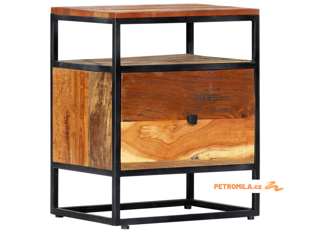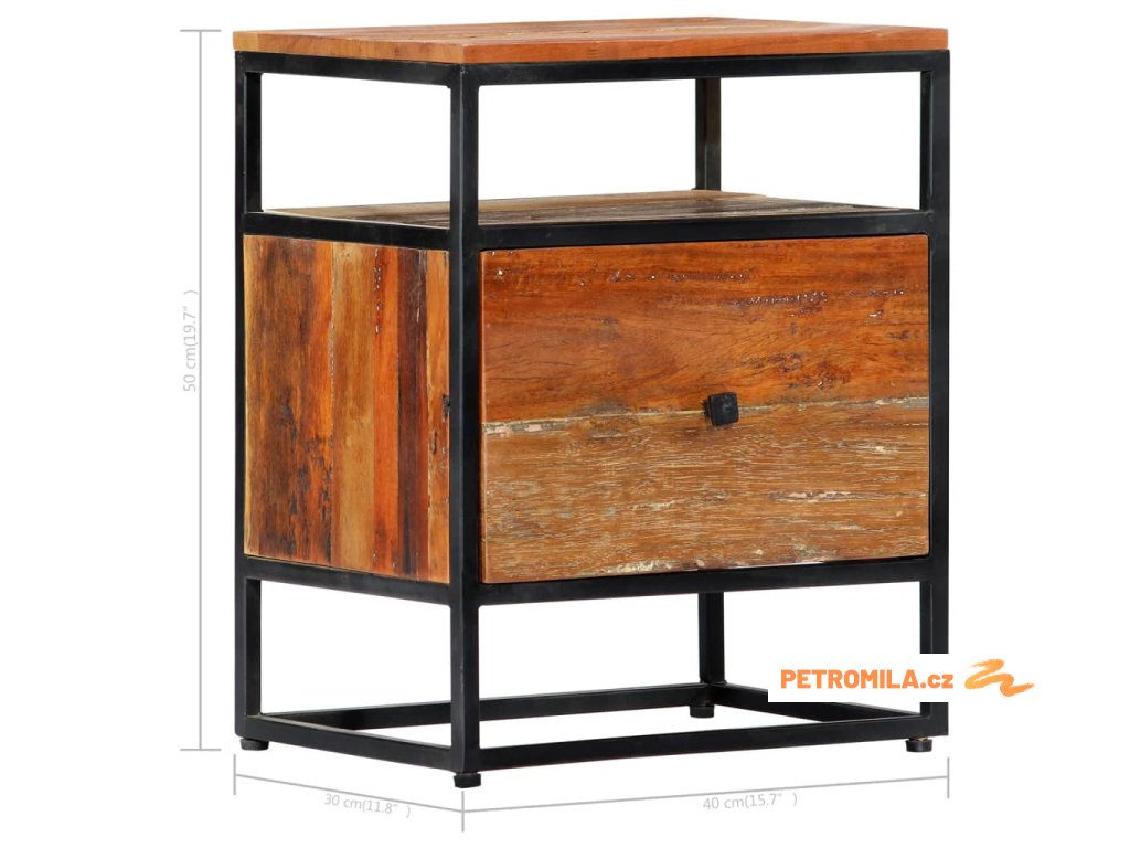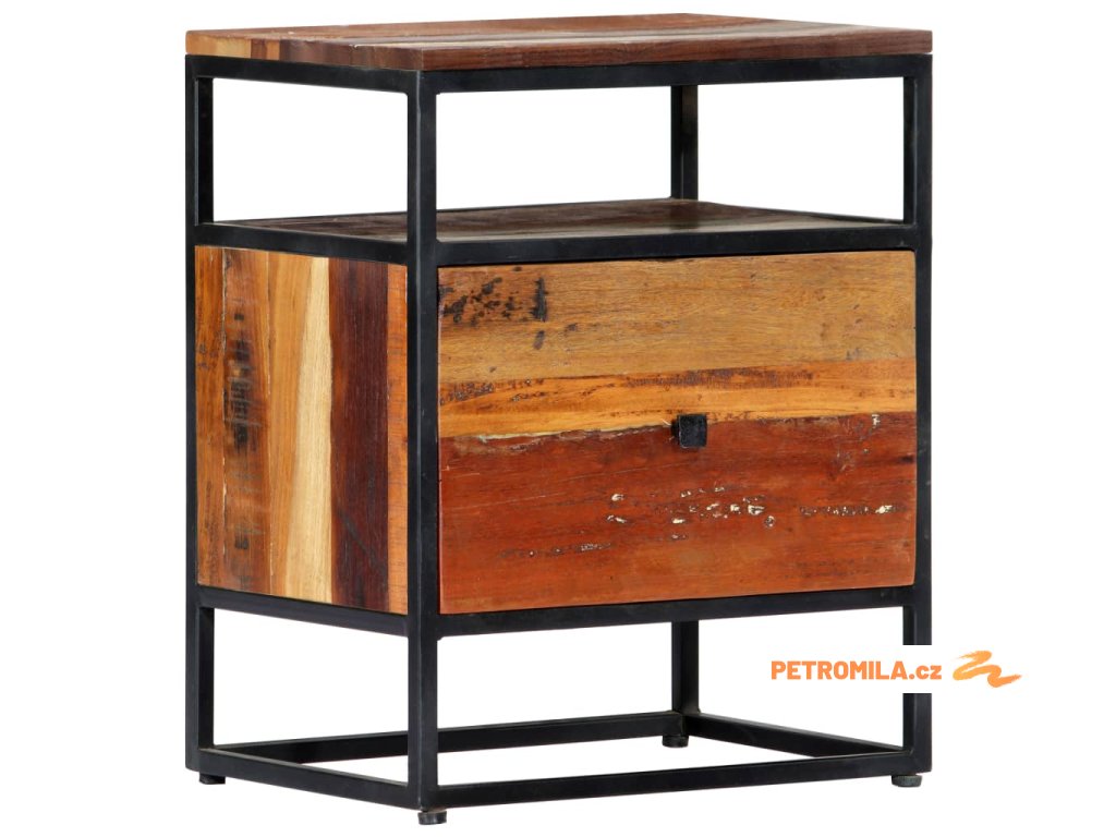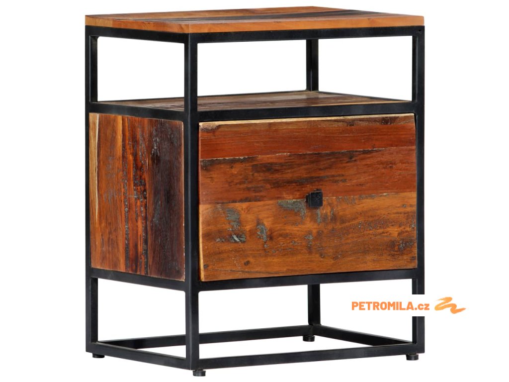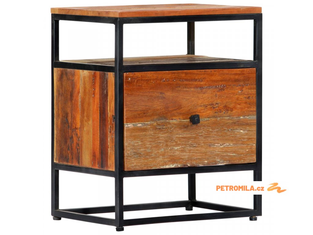 Noční stolek 40 x 30 x 50 cm masivní recyklované dřevo a ocel