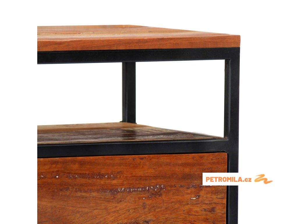 - Materiál: masivní recyklované dřevo + práškově lakovaná ocel + MDF