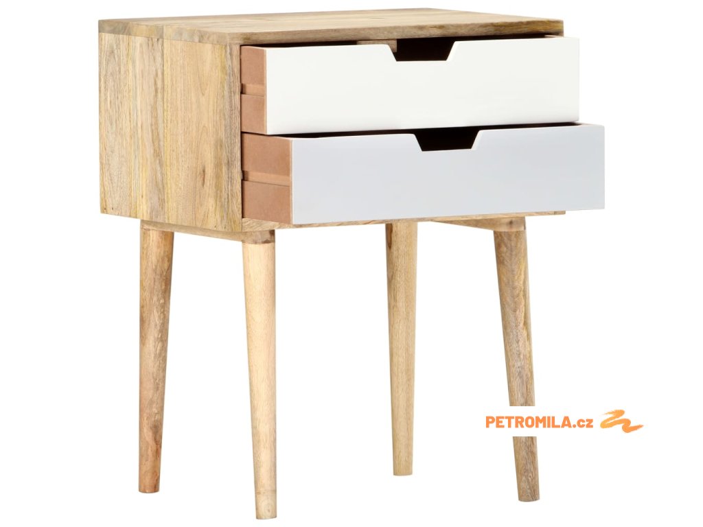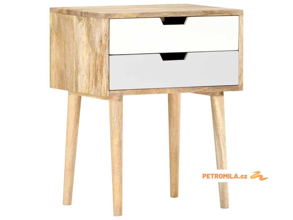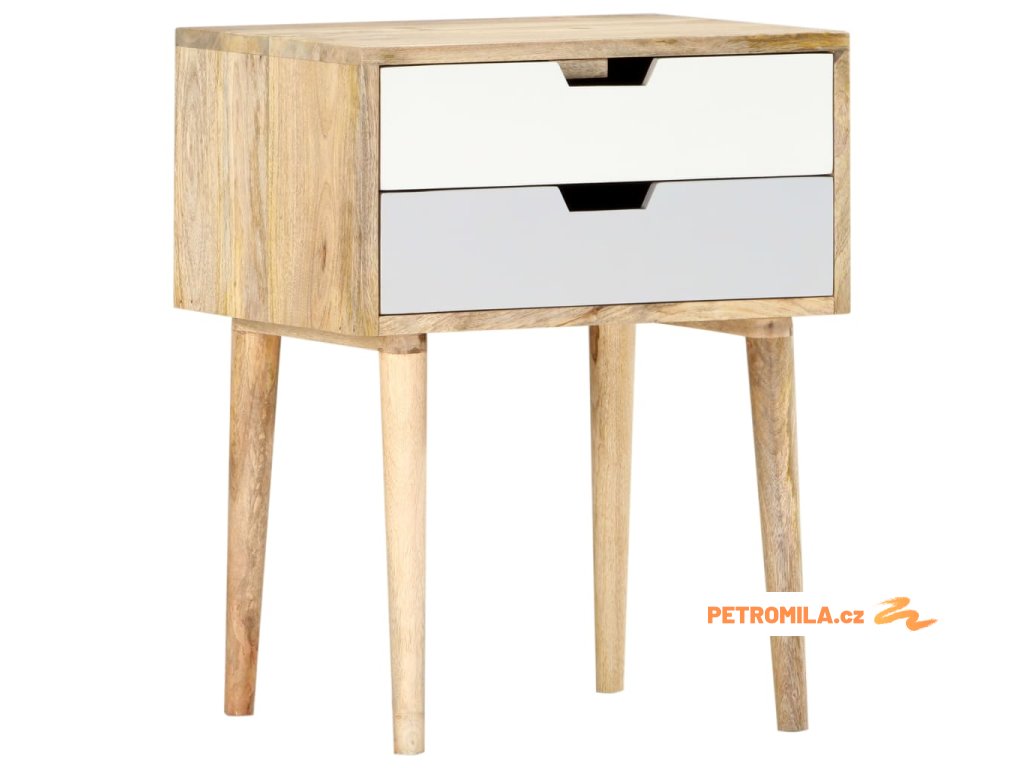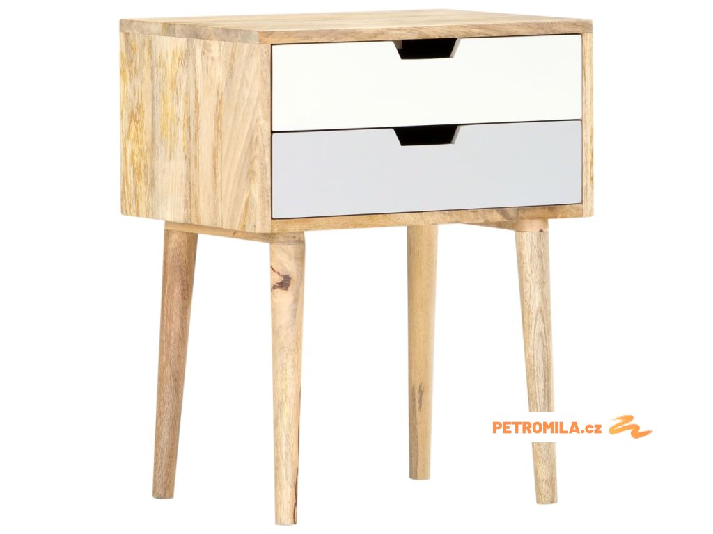 Noční stolek je ručně vyrobený z mangovníkového dřeva, je tudíž nejen pevný, stabilní a odolný, ale zároveň také krásně vypadá. Každá fáze výrobního procesu je prováděna s mimořádnou péčí, ať už se jedná o leštění, natírání anebo lakování. Zručné řemeslné zpracování a nádherná kresba dřeva dávají každému kusu nábytku jedinečný charakter, jímž se lehce liší od všech ostatních. Stolek má pevnou svrchní desku a dvě prostorné zásuvky, kam si můžete odkládat knihy, brýle, dálková ovládání a další osobní potřeby, které chcete mít na dosah. Sestavení našeho nočního stolku je snadné.