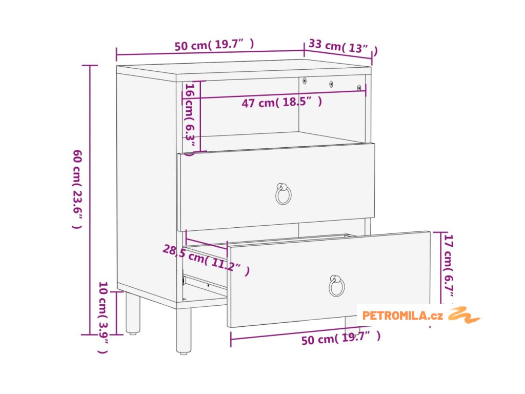 - Rozměry: 50 x 33 x 60 cm (Š x H x V)