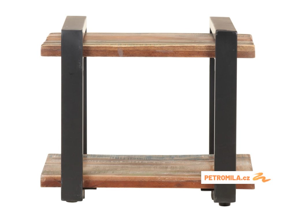 Noční skříňka je vyrobená z masivního recyklovaného dřeva, které pochází z trámů, podlah a podpěrných nosníků starých budov určených k demolici. Sestává tedy z různých druhů dřeva, jako jsou borovice, teak, buk, dub, cedar, mangovník, akácie apod. Recyklované dřevo tak nabývá vlastností všech těchto rozličných typů dřevin. Navíc je již zestárlé, ošlehané a vyschlé, takže se nesmršťuje ani neohýbá. Ruční výroba a atraktivní kresba dřeva dává každému kusu odkládacího stolku jeho neopakovatelný a od všech ostatních lehce odlišný charakter. Noční stolek má robustní horní desku, na kterou si můžete umístit vše, co potřebujete mít u postele, včetně lampičky. Do prostorné spodní poličky si můžete přehledně uložit poznámkové bloky, knihy a další potřeby.