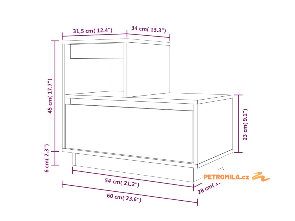 Noční stolek 60 x 34 x 51 cm masivní borové dřevo