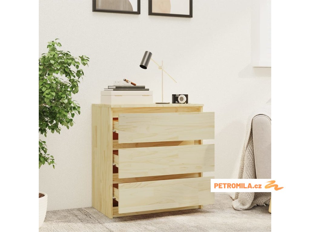 Odkládací skříňka má robustní konstrukci, takže má velmi dlouhou životnost. Je vybavený třemi zásuvkami, poskytne vám tedy spoustu úložného prostoru k přehlednému uspořádání všech věcí v dosahu ruky. Snadno se čistí vlhkým hadříkem.