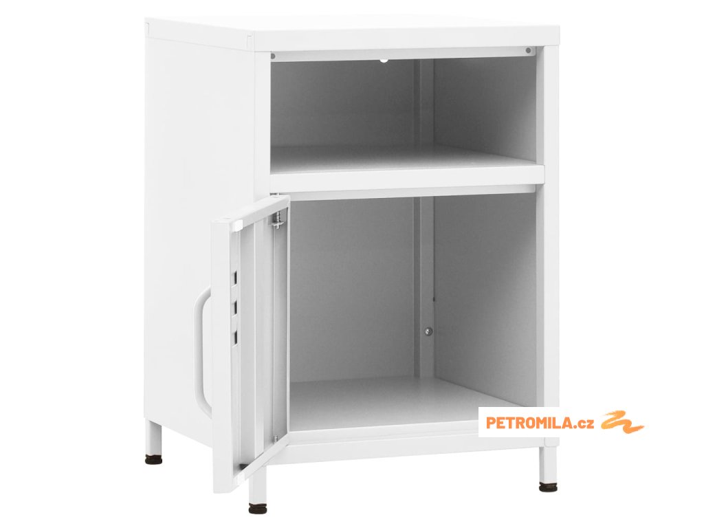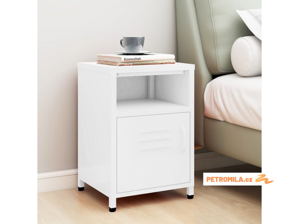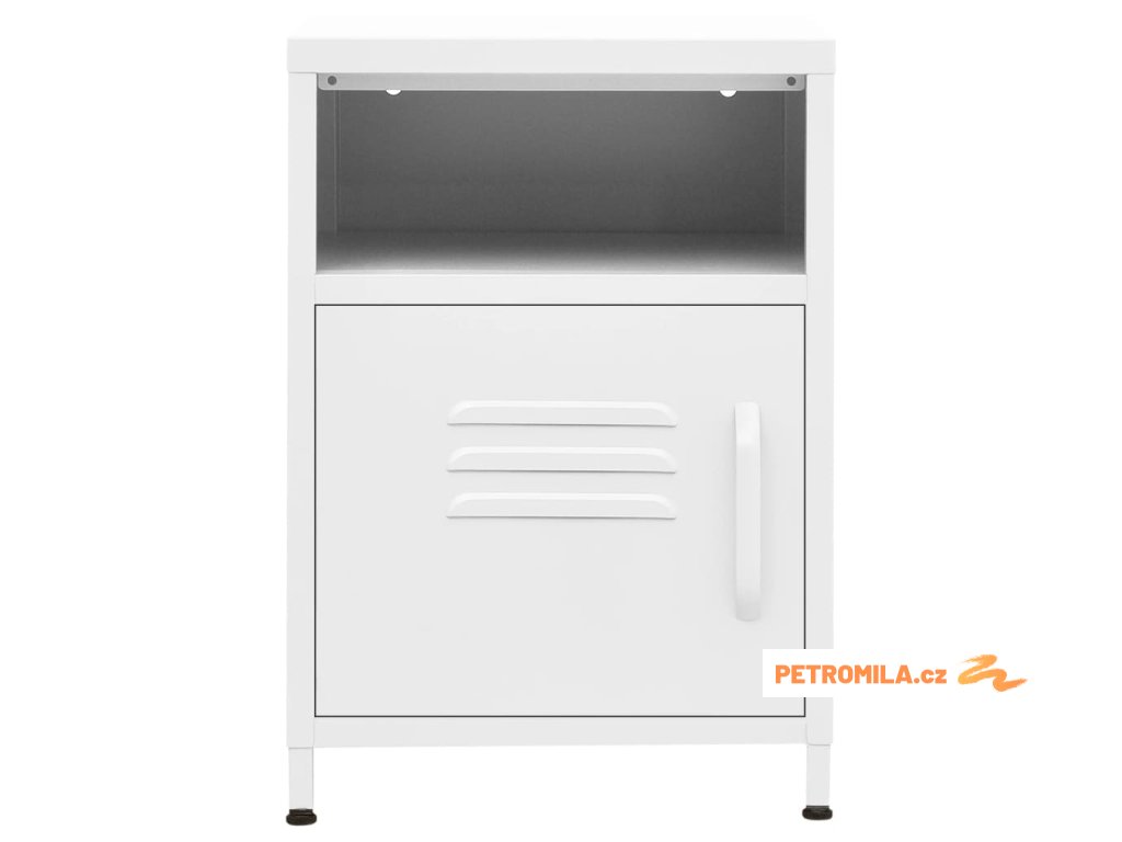 Noční stolek je vyrobený z oceli, takže je odolný a snadno se čistí. Najdete v něm 1 otevřenou přihrádku a 1 přihrádku s dvířky, které vám poskytnou spoustu místa k přehlednému uložení vašich DVD, multimediálních zařízení, knížek a dalších důležitých maličkostí tak, abyste je měli na dosah ruky. Nivelační nohy ve spodní části umožňují nastavit výšku podle vašich potřeb.