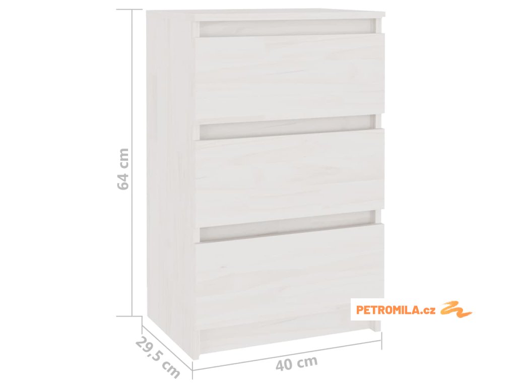 Noční stolek bílý 40 x 29,5 x 64 cm masivní borové dřevo