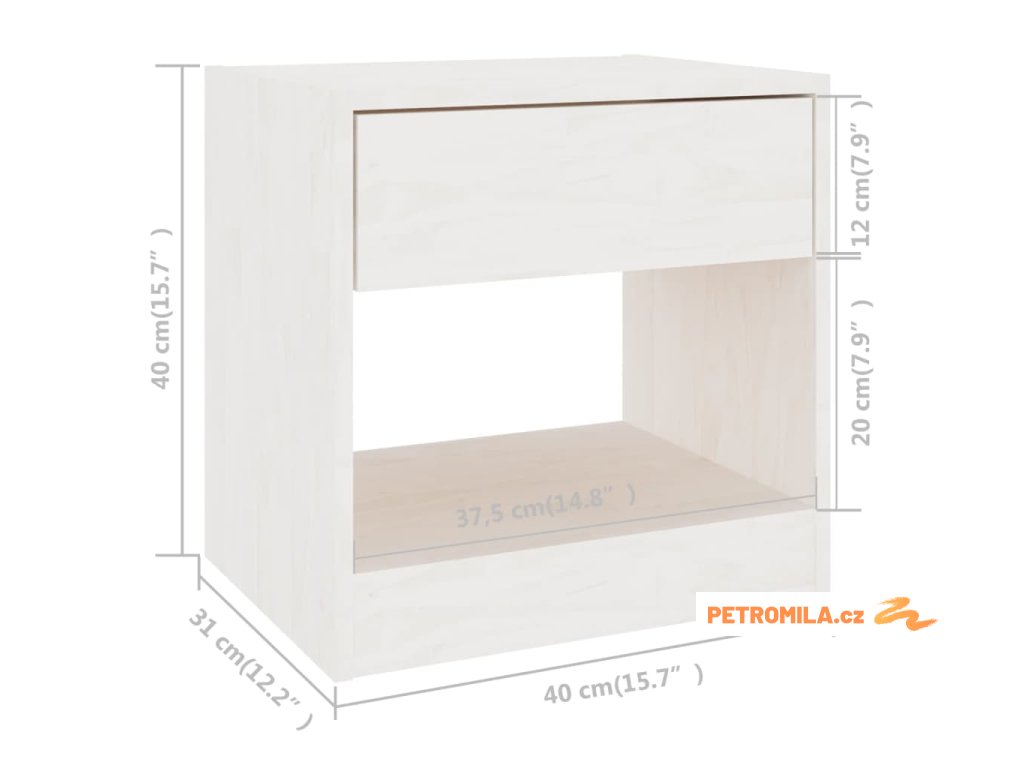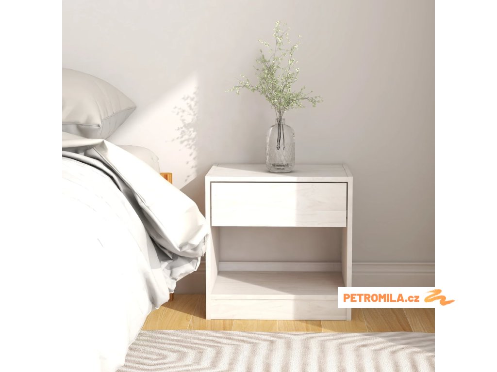 Noční stolek bílý 40 x 31 x 40 cm masivní borové dřevo