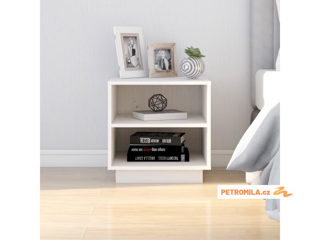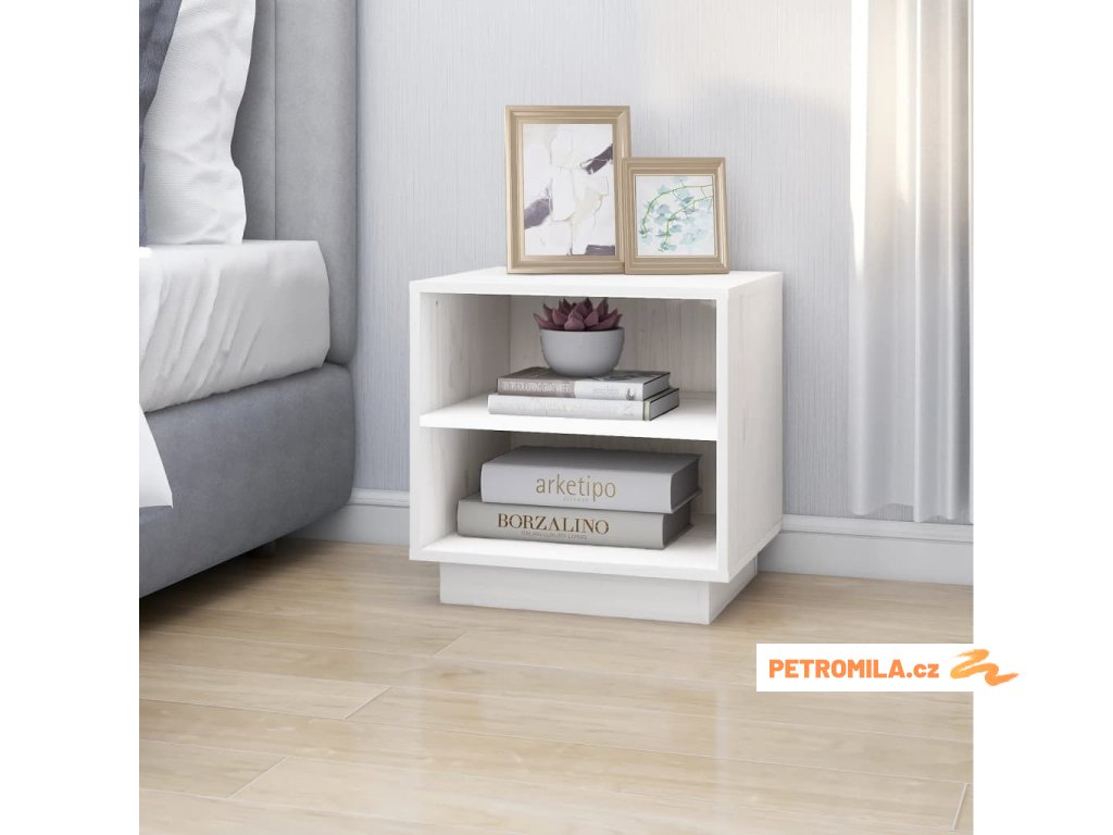 Noční stolek bílý 40 x 34 x 40 cm masivní borové dřevo