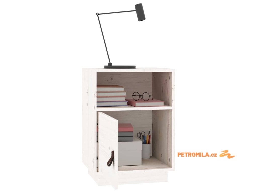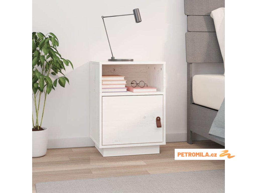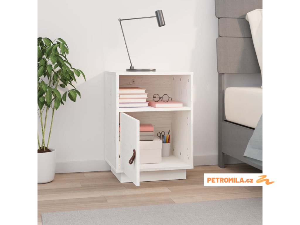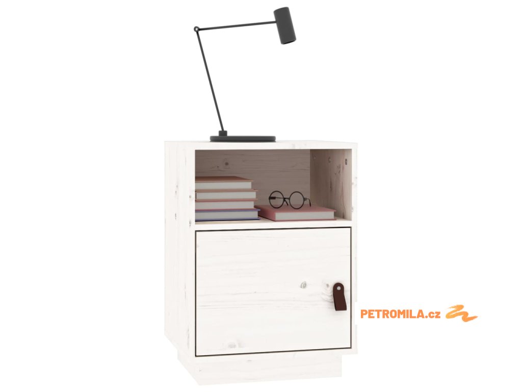 Noční stolek bílý 40 x 34 x 55 cm masivní borové dřevo