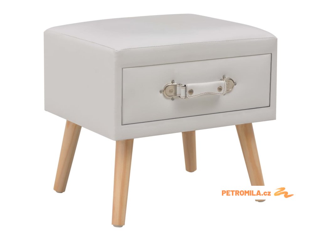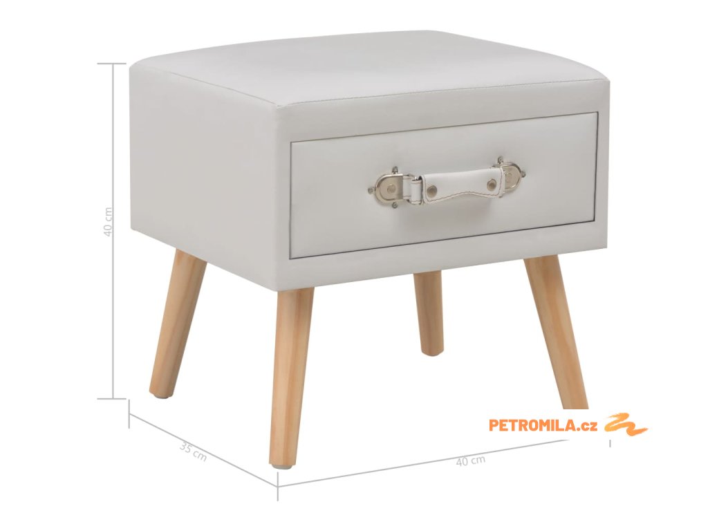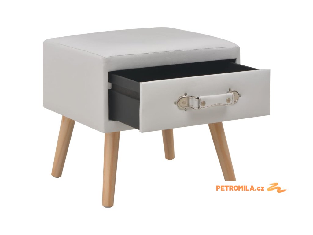 Noční stolek byl mistrně zhotoven z umělé kůže a masivního borového dřeva, je tedy mimořádně odolný a trvanlivý. Disponuje zásuvkou, jež se hladce otevírá a zavírá a poskytne vám spoustu místa, kde si můžete přehledně uspořádat různé drobnosti, které chcete mít po ruce. Můžete ho navíc také použít jako skříňku do ložnice, klasickou skříňku se zásuvkou atd. Noční stolek se snadno sestavuje.