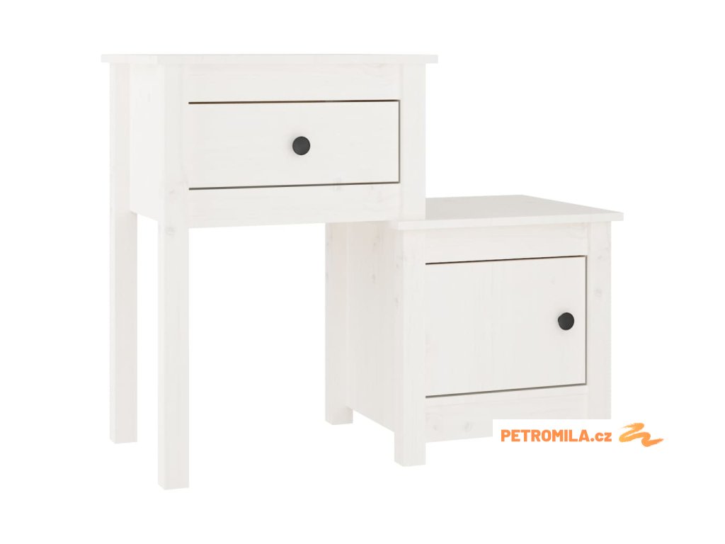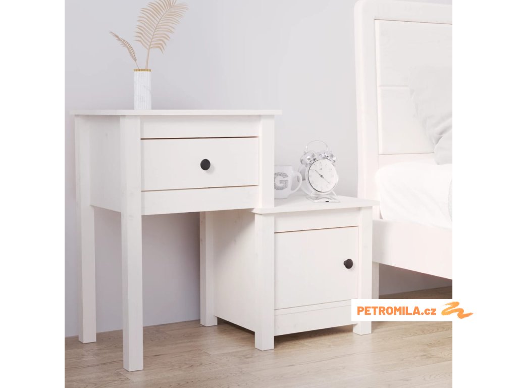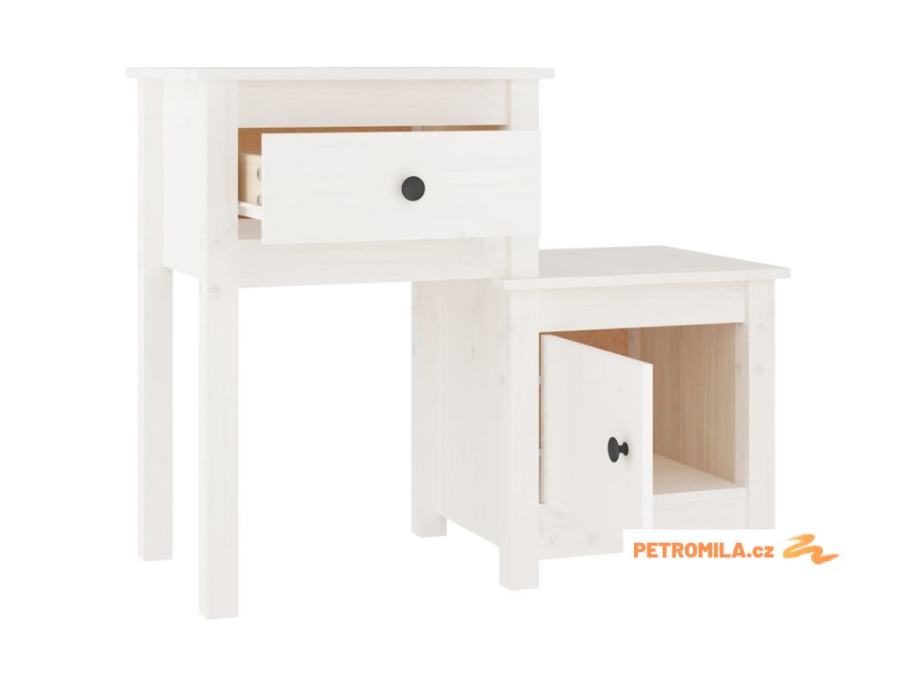 Noční stolek bílý 79,5 x 38 x 65,5 cm masivní borové dřevo