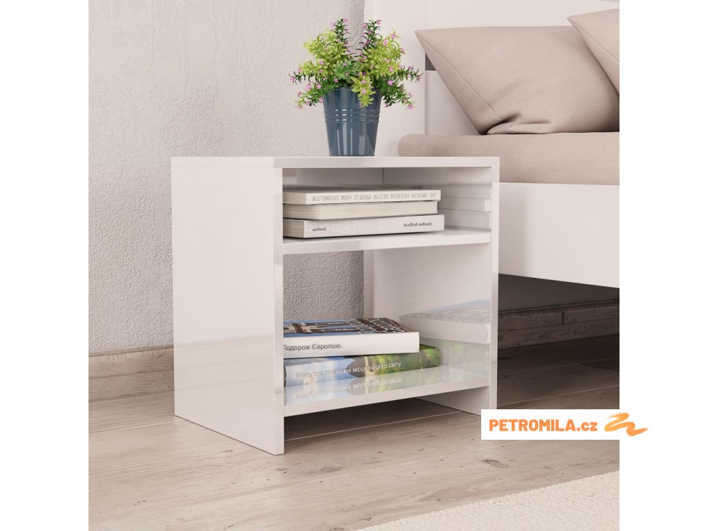 Noční stolek bílý s vysokým leskem 40x30x40 cm kompozitní dřevo
