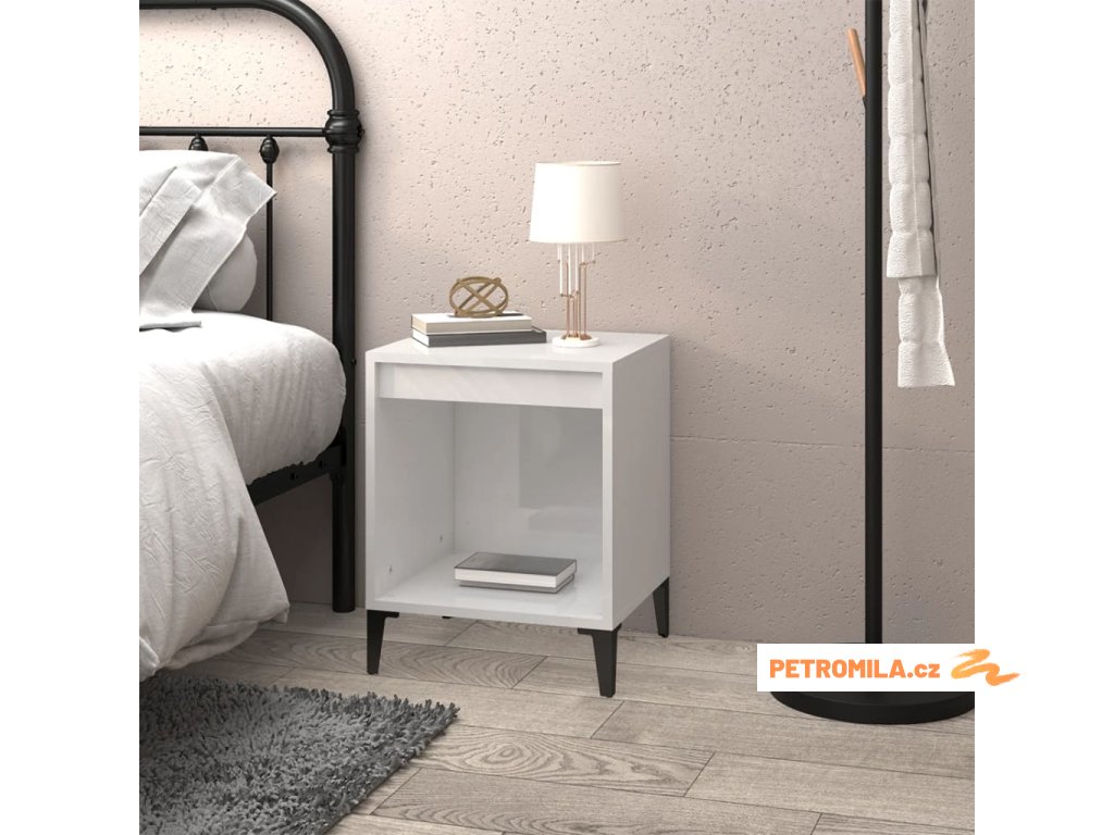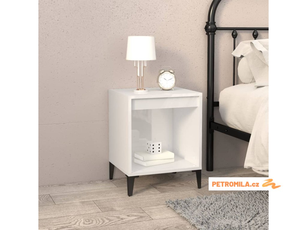 Noční stolek bílý s vysokým leskem 40x35x50 cm