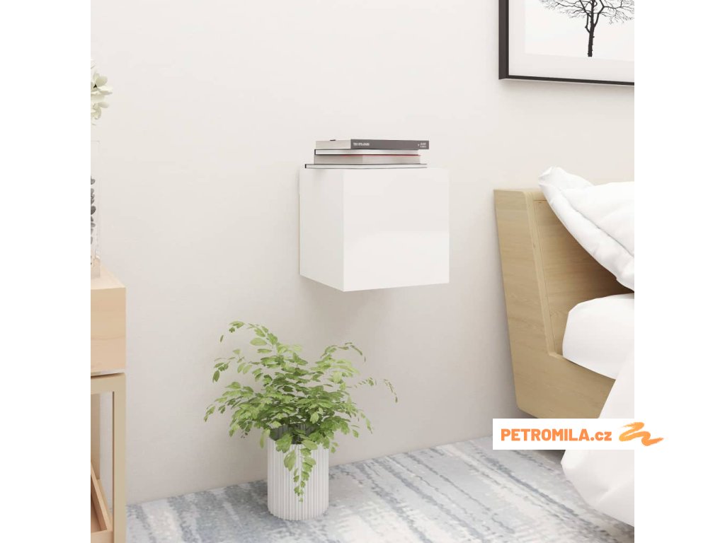 Noční stolek bílý vysoký lesk 30,5x30x30 cm kompozitní dřevo