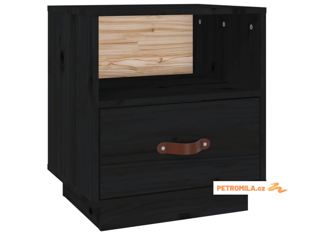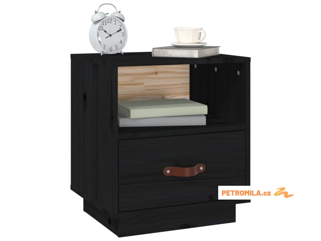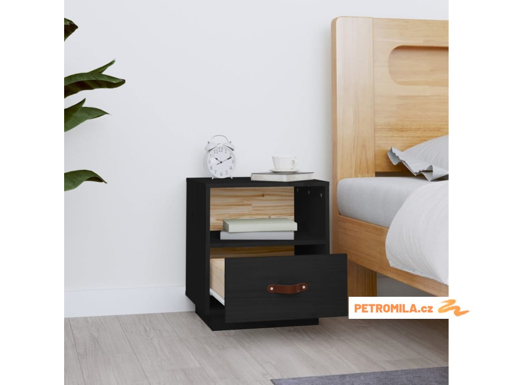 Noční stolek černý 40 x 34 x 45 cm masivní borové dřevo